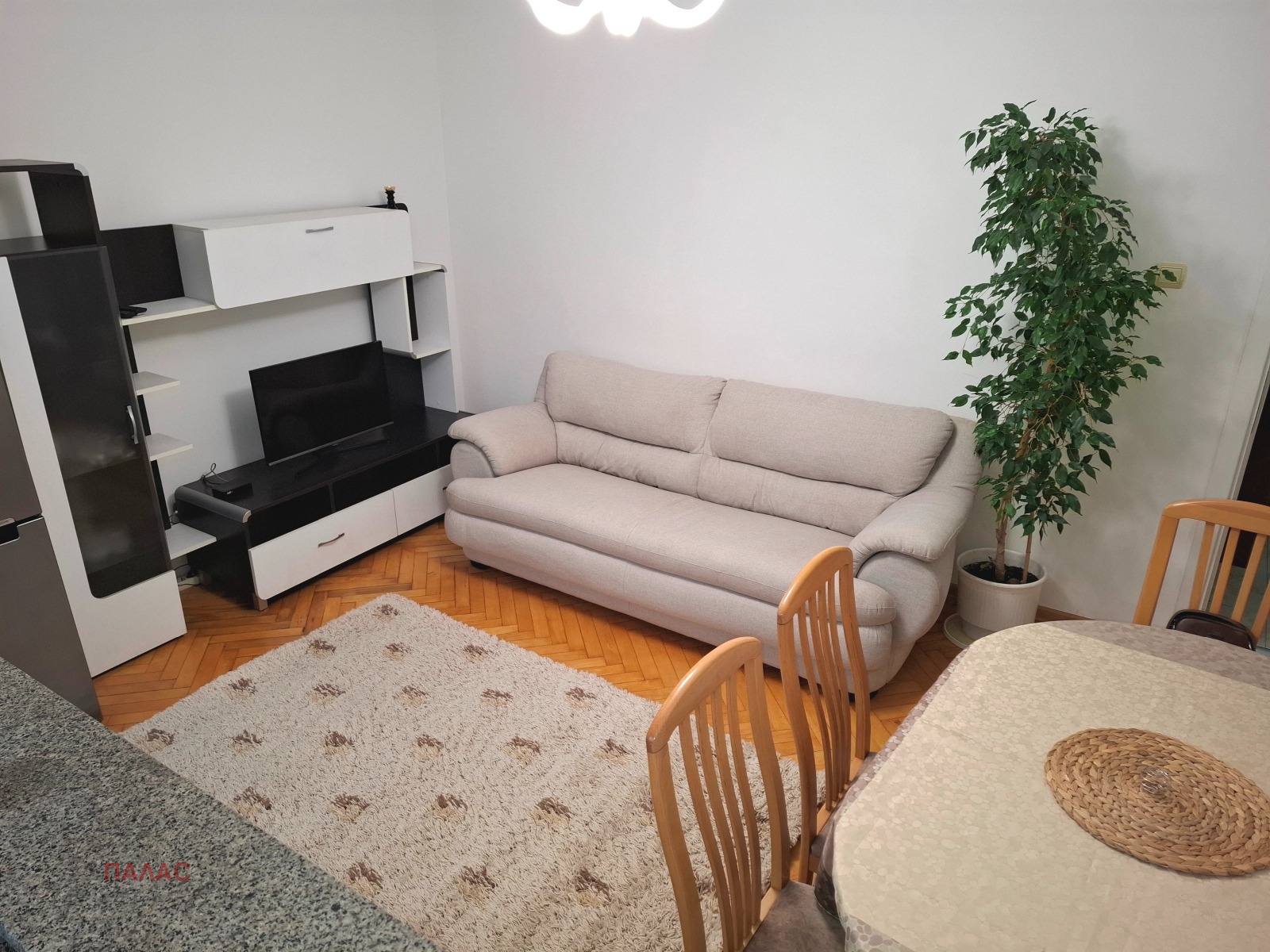 трапезна маса с четири стола, холова секция, телевизор, широка спалня, два гардероба, скрин и др/. Изключително светъл и топъл имот/изложение-юг/. В имотът не се допускат домашни любимци! Дава се само дългосрочно/минимален срок 12месеца/, а не на нощувки. Чудесно предложение за хора ценящи спокойствието и домашният уют. Офертата е само за директни клиенти. Разполагаме с ключ за апартамента-огледи в удобно за клиента време.