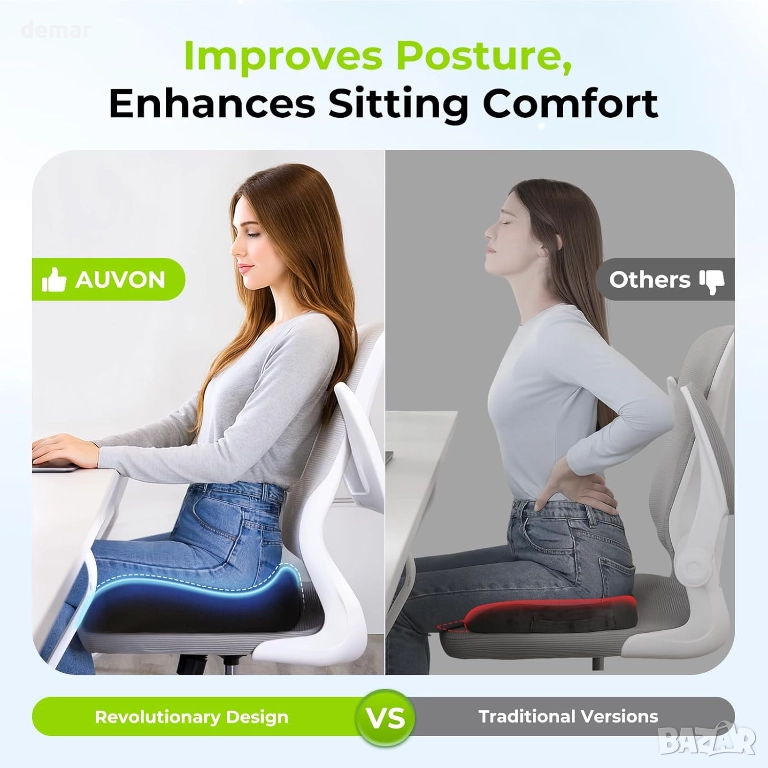 AUVON Контурирана възглавница за сядане, ергономична възглавница за офис стол за комфорт
