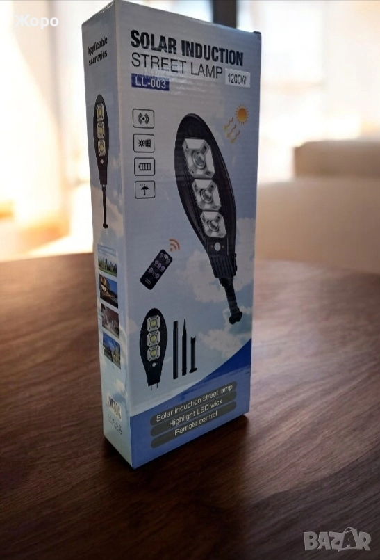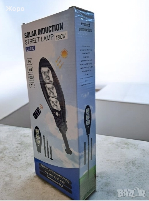 Соларна лампа 1200W е изцяло автономна и водоустойчива! подходяща за двор или тераса .През светлата част на деня батерията се зарежда, като веднага след като се стъмни осветлението се включва автоматично, благодарение на сензорна клетка за външна осветеност, които са в соларния панел.