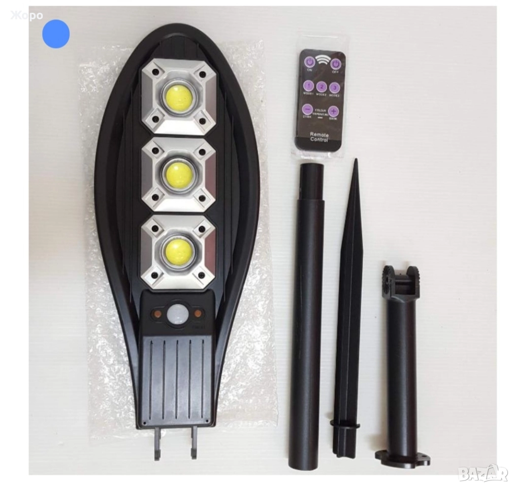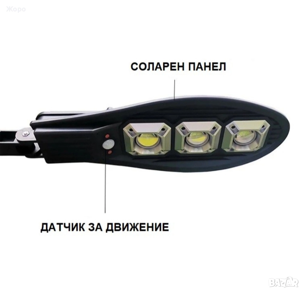 Улична Соларна LED Лампа 1200W с датчик за движение и дистанционно управление+ стойка за монтаж