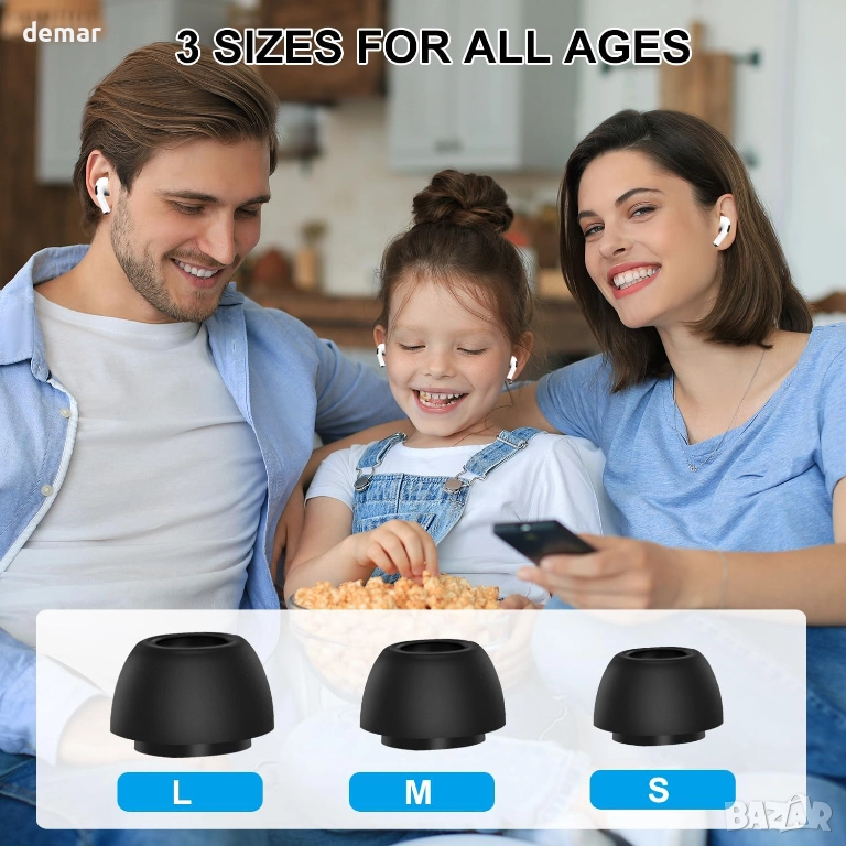Резервни накрайници за уши за AirPods Pro 3 (2025), 3 чифта (S/M/L, черни)