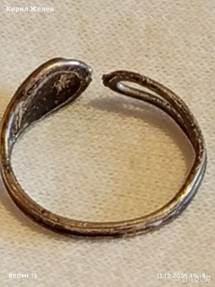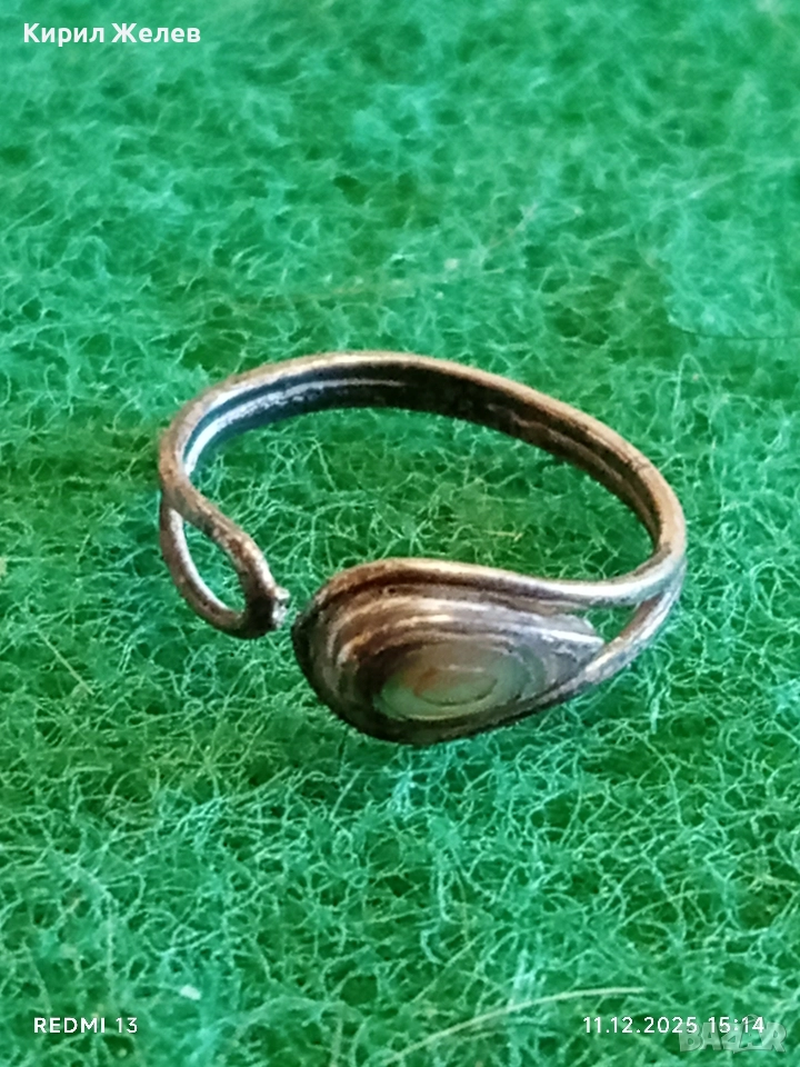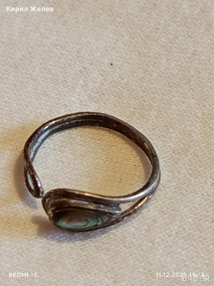 Винтидж авторски сребърен пръстен с седеф ръчна изработка 52425