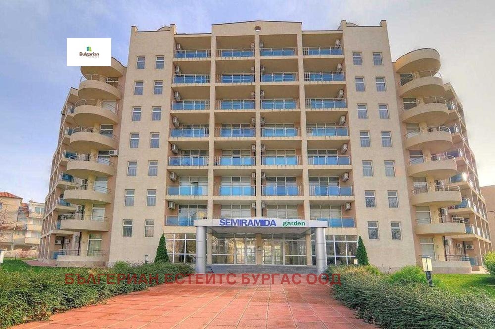 Предлагаме за продажба просторно студио с площ 56 кв.м., разположено на 5-ти етаж (не последен) в комплекс Семирамида Гардън Слънчев Бряг.