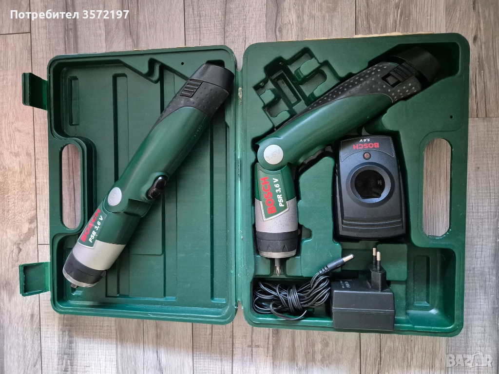 2бр вертове на бош 12v със зарядно и кутия, като един е с рециклирана батерия.