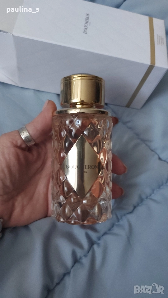 Boucheron 100ml EDP. Цената е крайна, без пазарлъци 89,99лв / 45 евро Дамски парфюм с доказано качество в годините, част от личната ми колекция, стар бач код, подходящ е за подарък. Липсва 1 спрей за проба. Не е моят, пълна презентация, продукт с кутия, подходящ е за подарък.