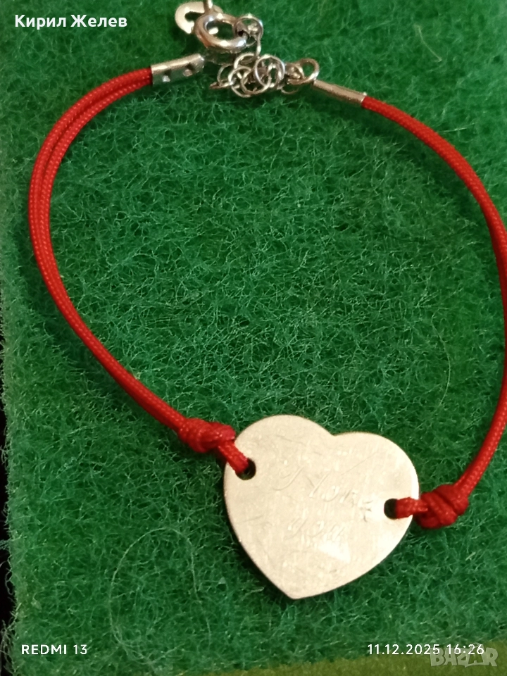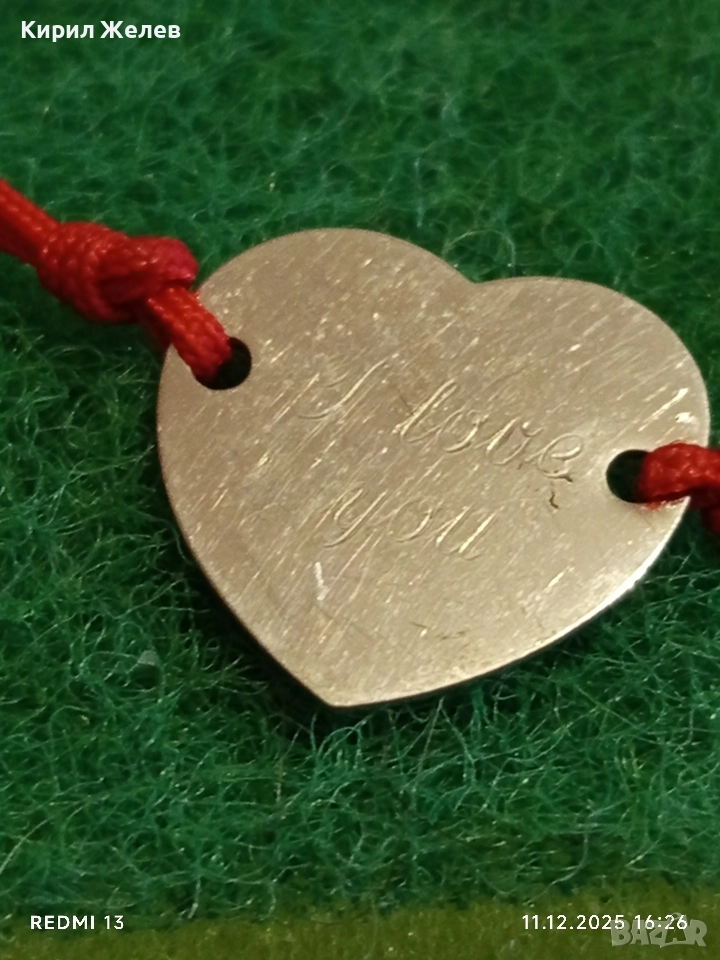 СРЕБЪРНА ГРИВНА за КЪСМЕТ във ФОРМАТА на СЪРЦЕ и ГРАВИРАНЕ i love you 43136