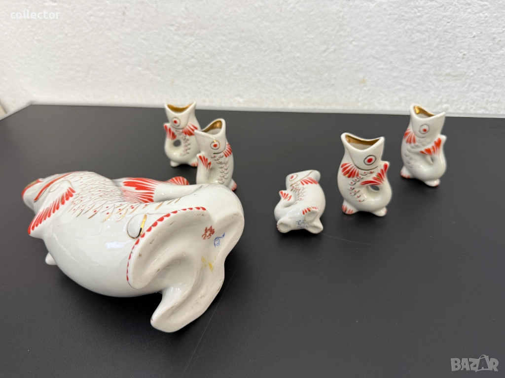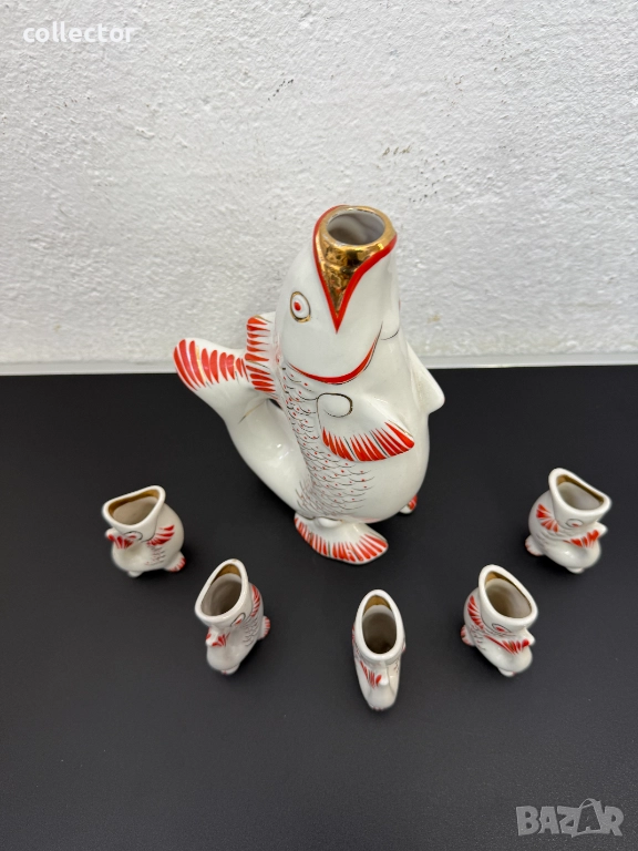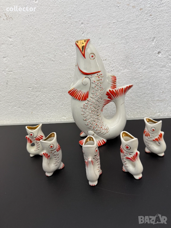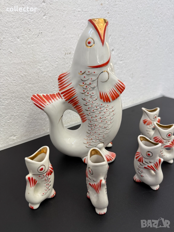 Тези комплекти са емблематични за съветската епоха и са били изключително популярни от 60-те до 80-те години на миналия век. Изработвани от порцелан и рисувани на ръка, състояние видно от снимките.