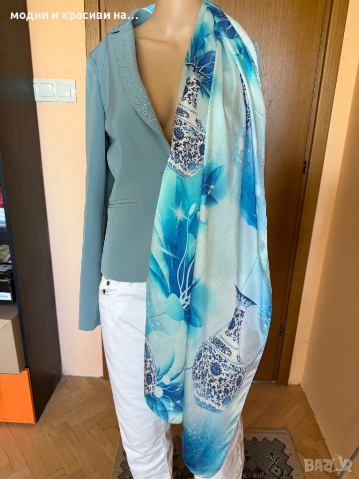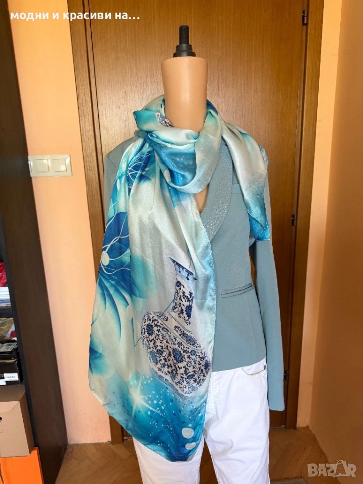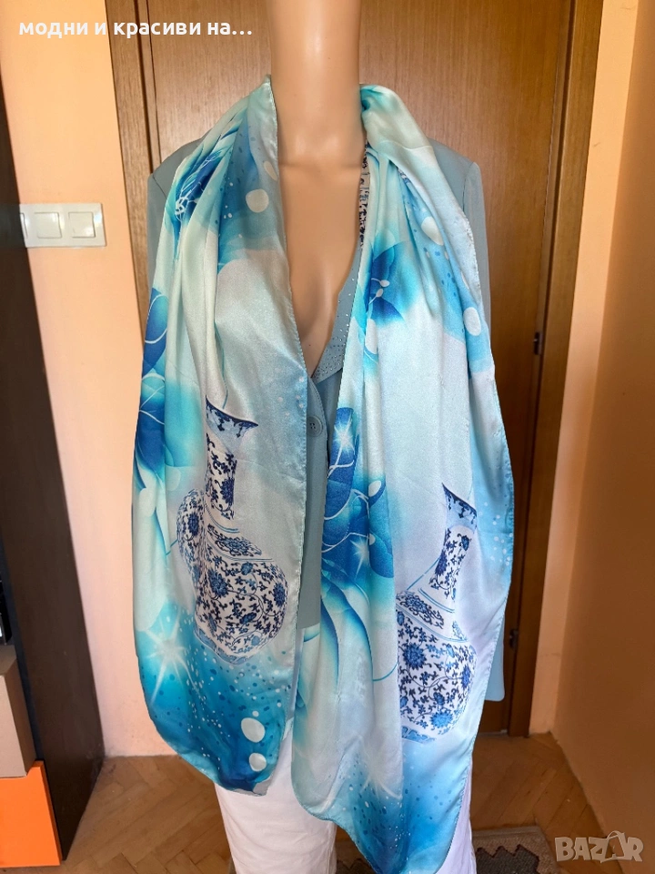 Красив копринен шал в синята гама