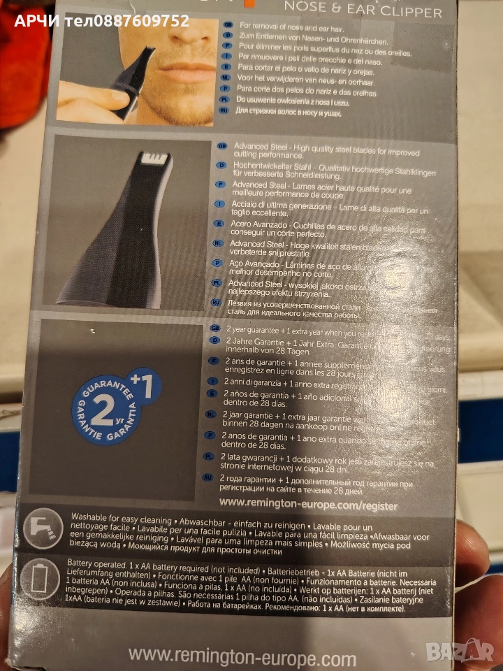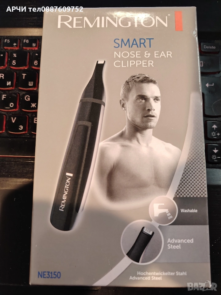 Тример Remington NE3150 Smart е подходящ за фини детайли. Отстранява нежеланото окосмяване в областта на носа, веждите и ушите. Остриетата са с високотехнологично стоманено покритие, което дава възможност накрайникът да се мие под течаща вода. Захранването става посредством батерия размер АА.