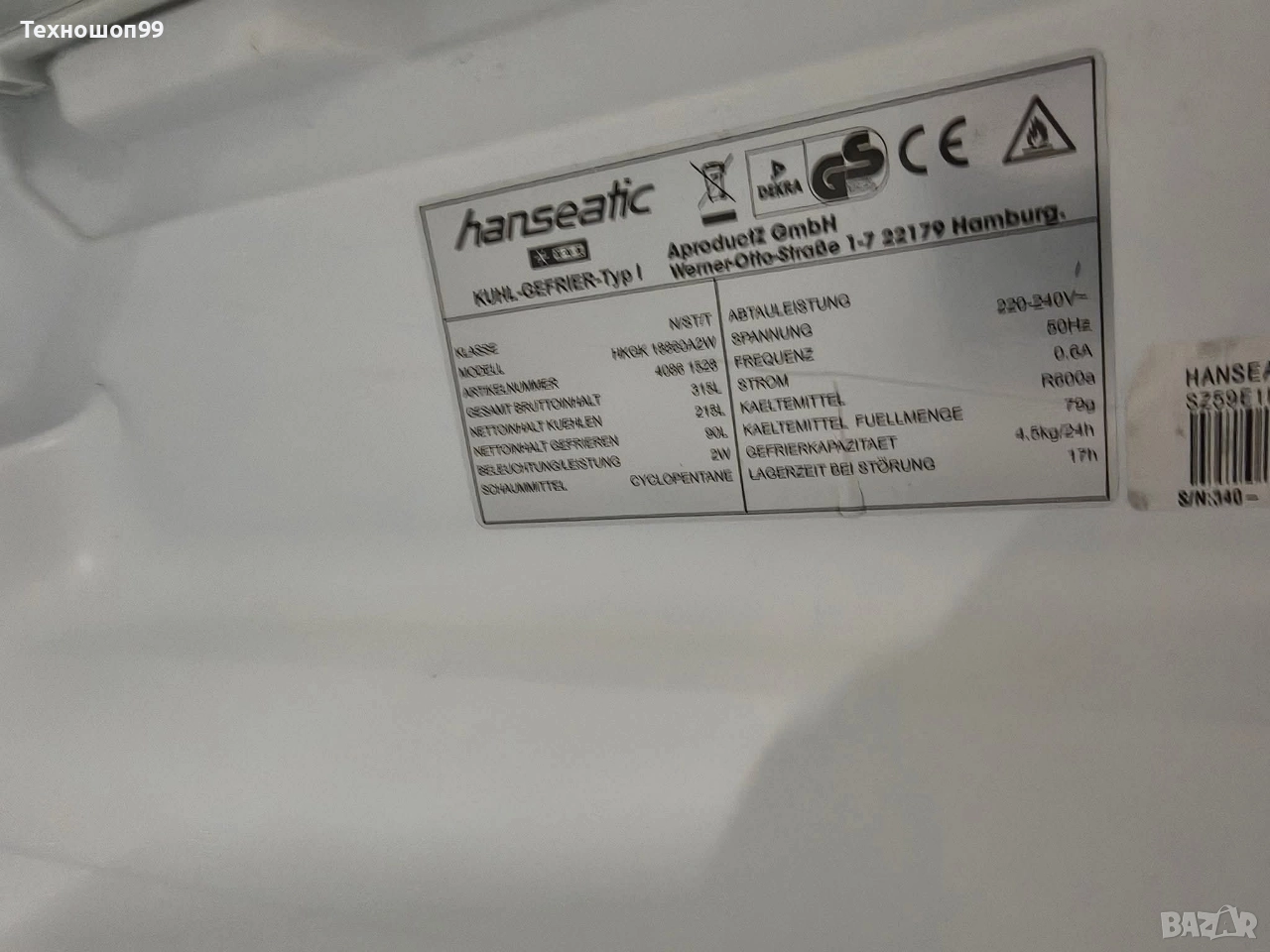 📌 Марка / Модел: Hanseatic HKGK 18860A2W