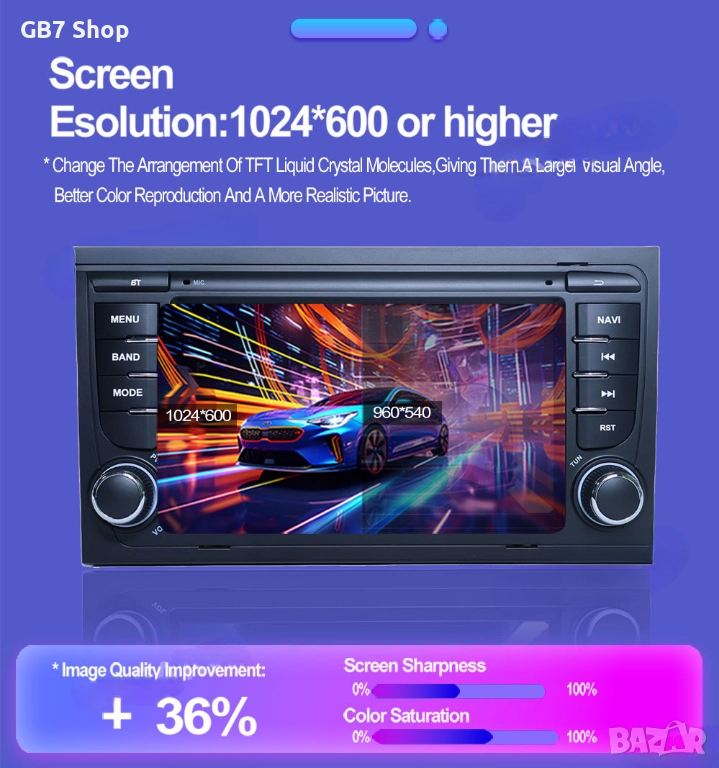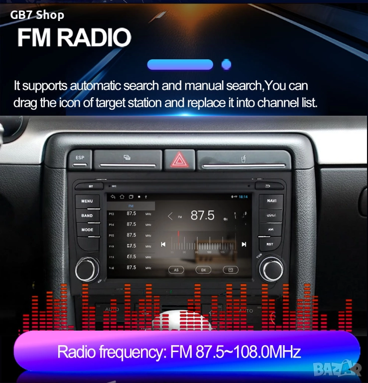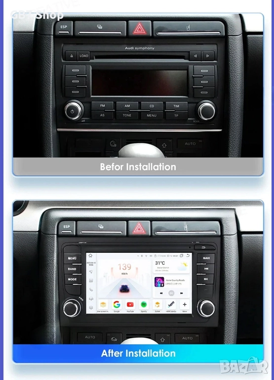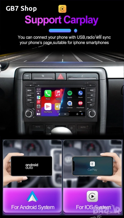 Мултимедия за Audi A4 2Din 7-инчa *Android|Carplay | Bluetooth |GPS навигация | Bluetooth | MP5 плей
