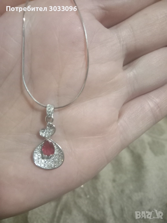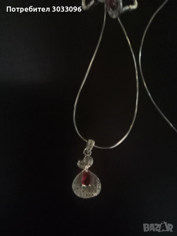 Сребърно колие с висулка и обеци с червен циркон във форма на капка и малки бели циркони обеци ,висулка по 30 лв синджирче 20 лв може и по отделно може и в комплект.