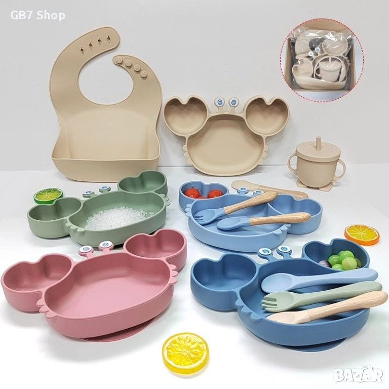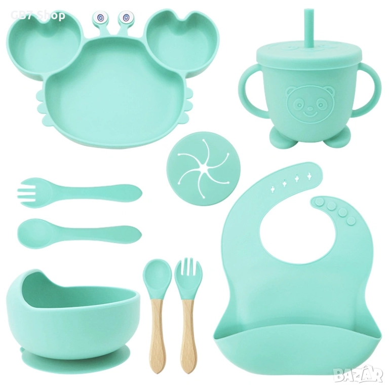 Комплект Силиконови Бебешки Прибори 9 в 1 – Безопасно, Удобно и Весело Хранене!