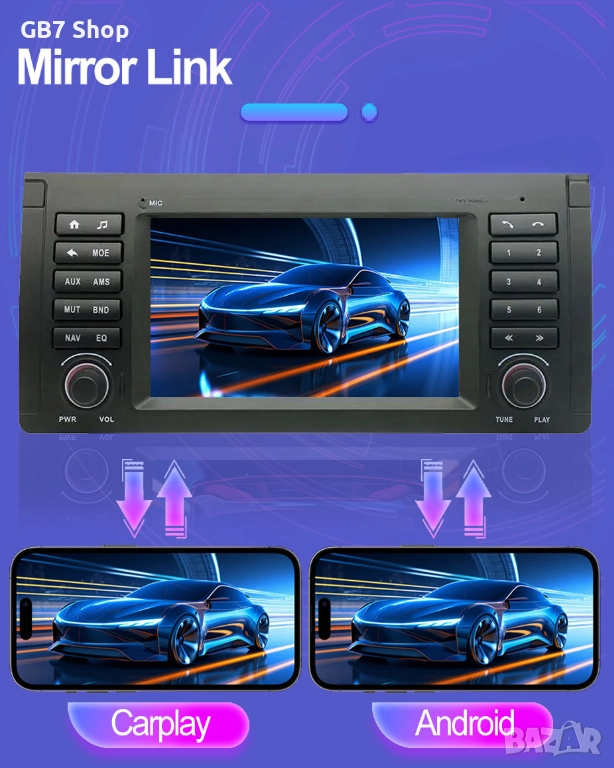 ✅ CarPlay & Android Auto – поддръжка на безжичен или кабелен Mirrolink, лесно интегриране със смартфон