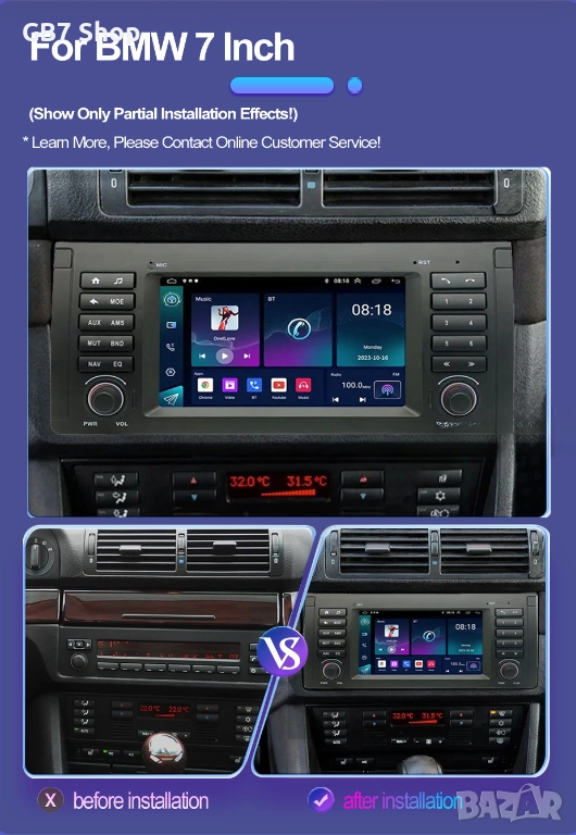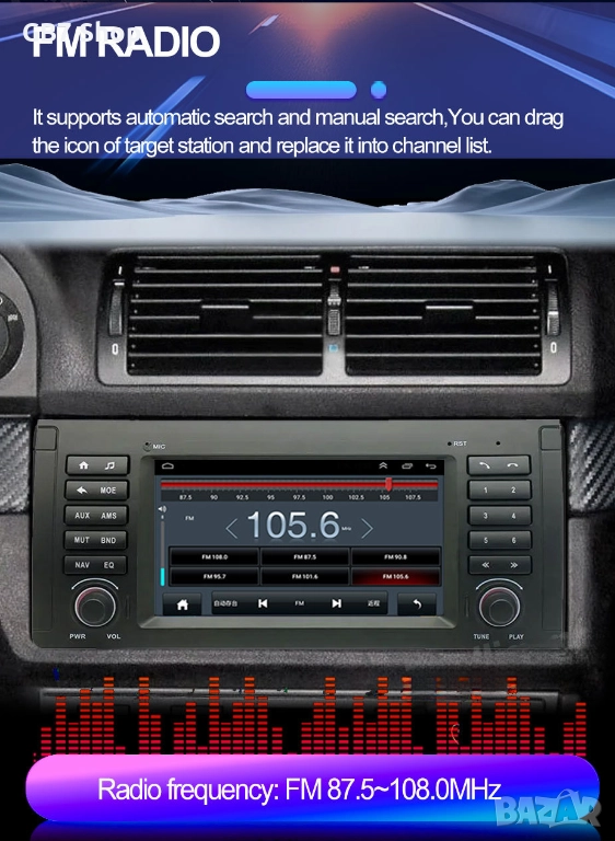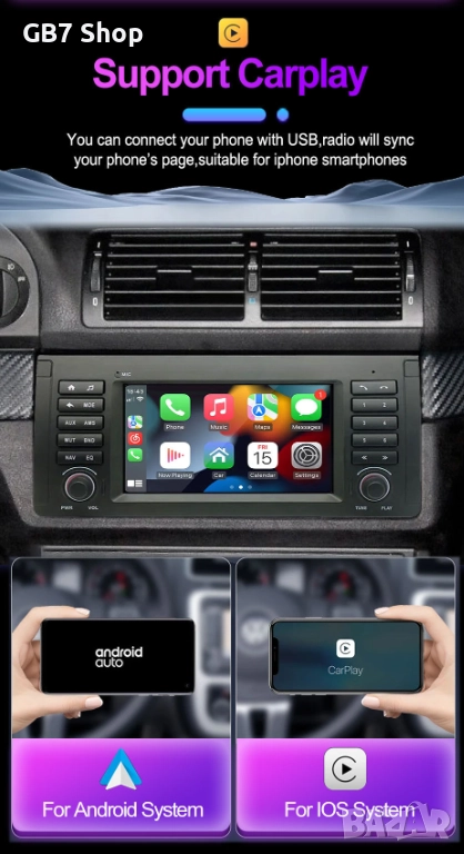 Мултимедия за BMW 5 E39 и BMW X5 E53 2Din 7-инчa *Android|Carplay | Bluetooth |GPS навигация |