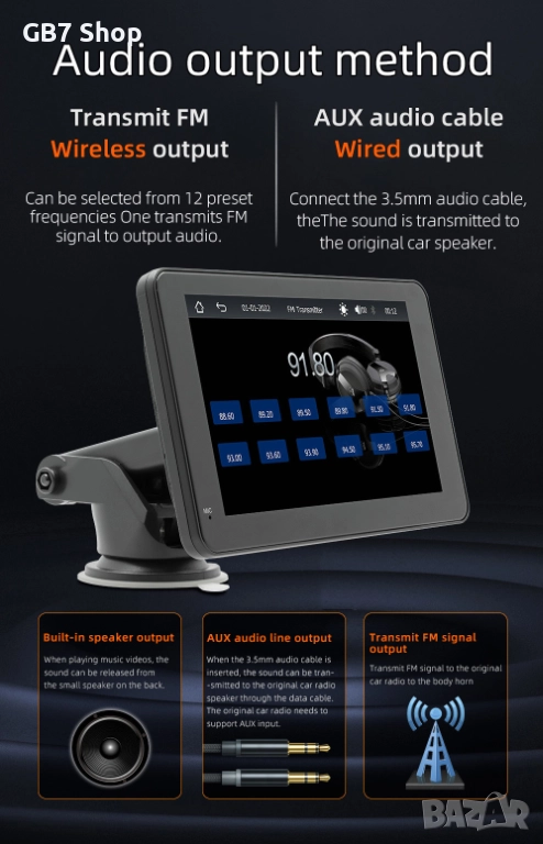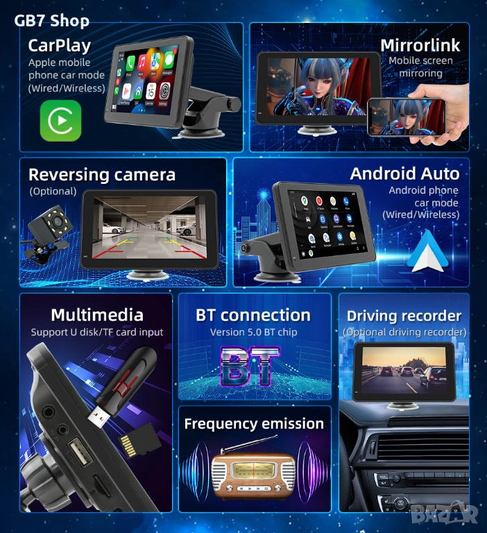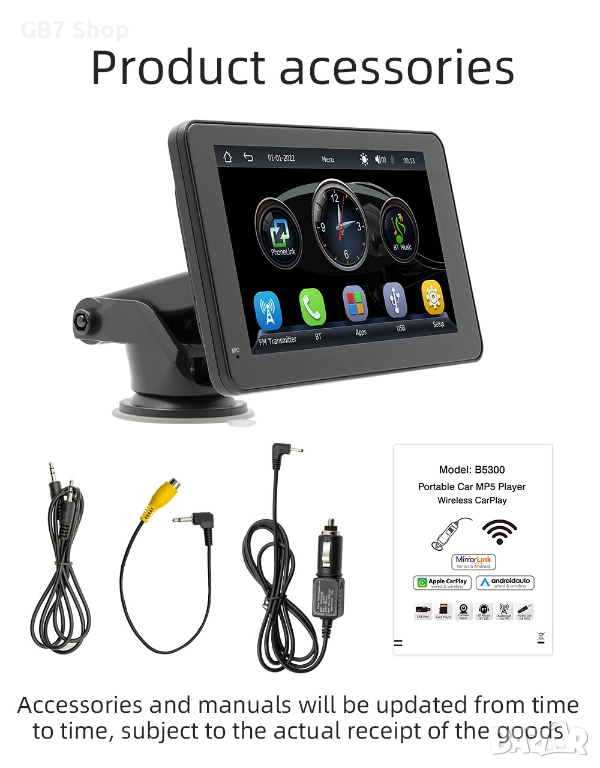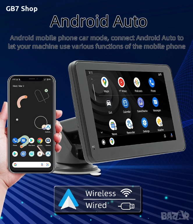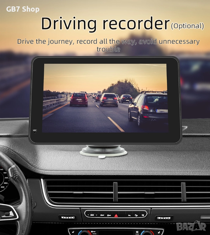 📌 B500W с AHD функция е универсална автомобилна Android мултимедия с 7-инчов тъчскрийн дисплей и стойка за монтаж на таблото. Осигурява безжичен CarPlay, Android Auto, навигация, музика и видео във висока резолюция. В комплекта получавате подарък