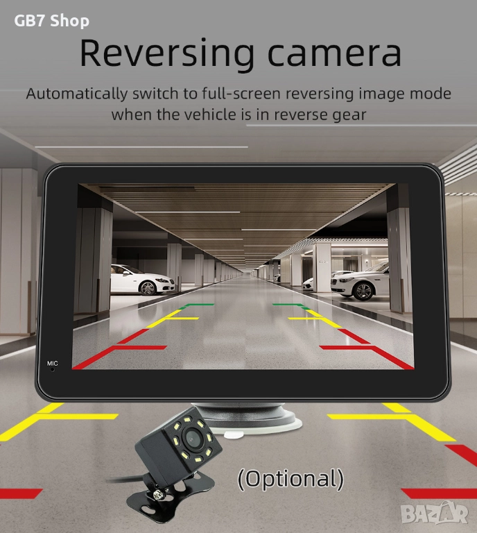 7" Универсална Android Навигация B500W Със Стойка За Табло + Подарък AHD Камера За Задно Виждане