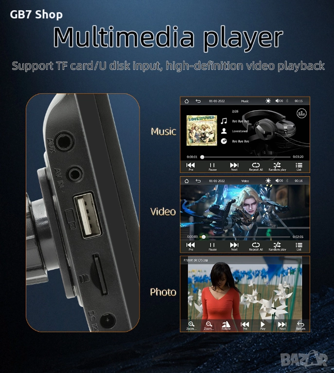 ✔ USB & TF карта – възпроизвежда видео и аудио файлове директно