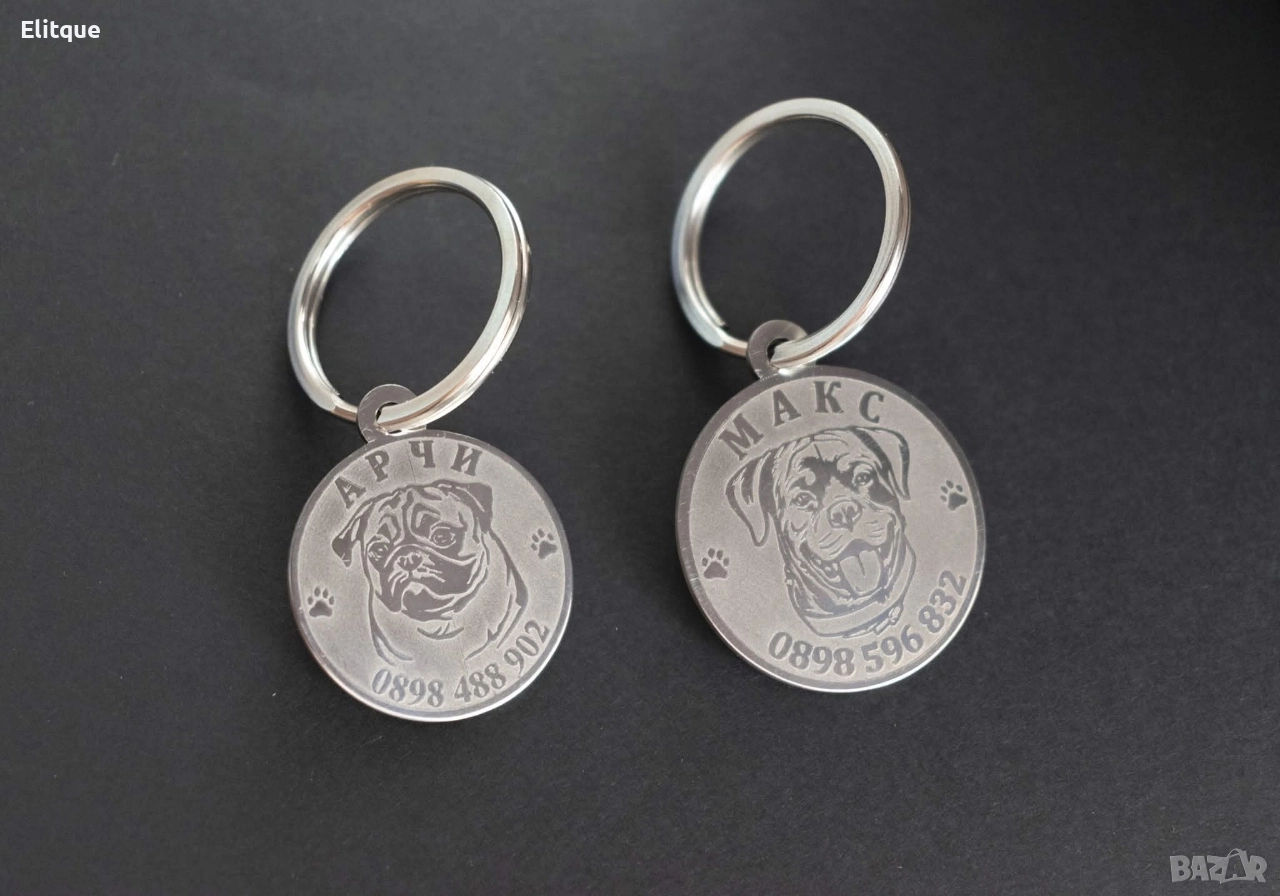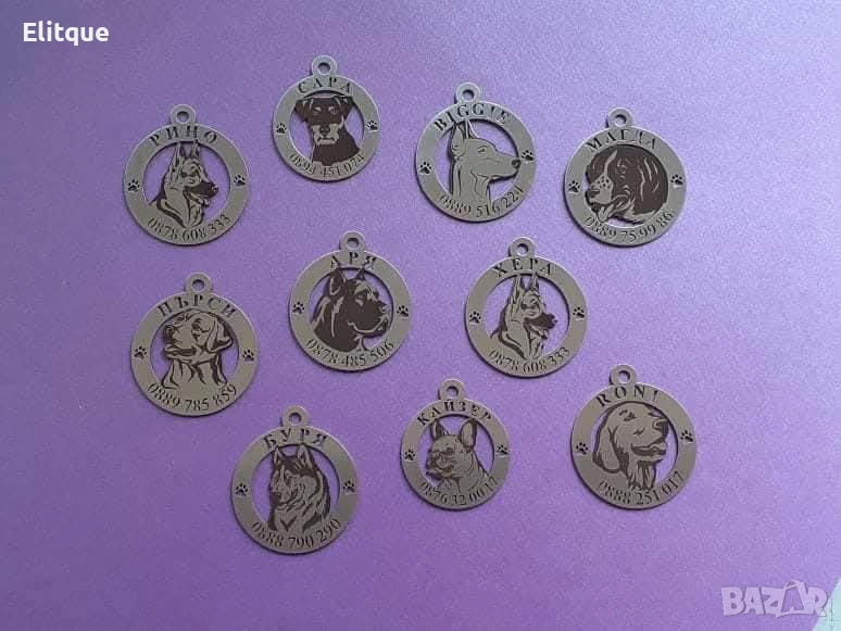🐾 Медальони за кучета от неръждаема стомана (лазерно рязане и гравиране) 📏 Размери: • Малки породи – 25 мм или 30 мм – 21 лв (≈ 10,75 €) • Стандартен – 35 мм – 21 лв (≈ 10,75 €) • 40 мм – 22 лв (≈ 11,25 €) • 50 мм – 23 лв (≈ 11,75 €) 💡 Името на кучето и телефонен номер лазерно изрязани 💡 Породата лазерно гравирана 💡 Медальон със снимка +2 лв (≈ 1,05 €) 📦 Изпращане: само с Еконт Издълбани медальони Изработени са висококачествена неръждаема стомана с дебелина 1,2 мм. и размер 35мм. Медальоните са лазерно гравирани с дълбочина и са полирани. Изключително здрави. За малки породи кучета размера е 30мм. и 25мм. Цена: 21лв. За размер 40мм-22лв. 50мм-23лв. Цена: 21лв. За размер 40мм-22лв. 50мм-23лв. Изпращане само с еконт!