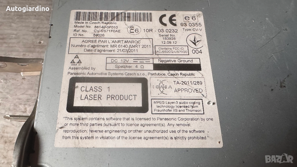 Оригинална Аудио / GPS и видео система за Toyota Corolla verso 2012 - 86140-0F010 / CV-VS71F0AE
