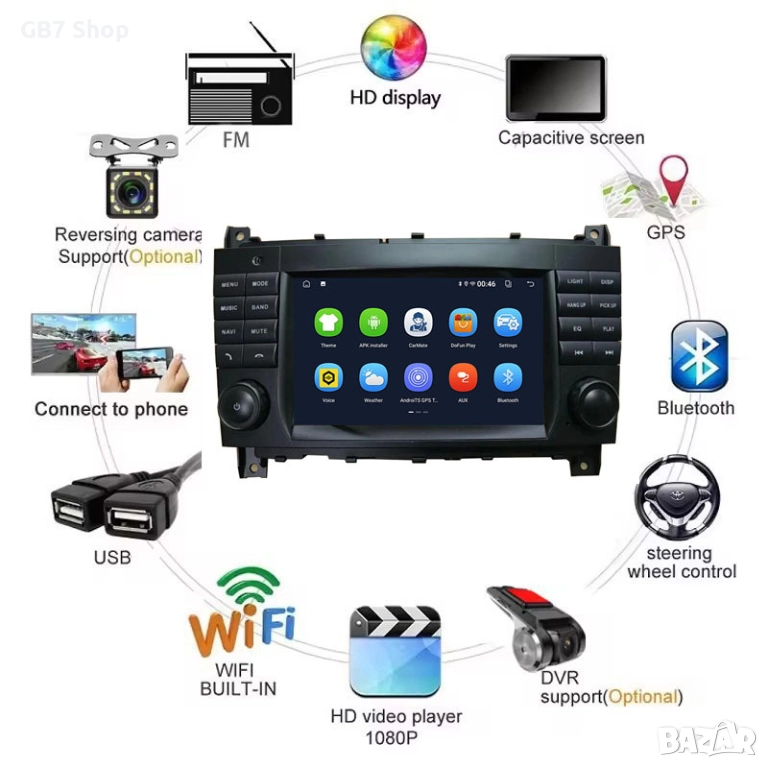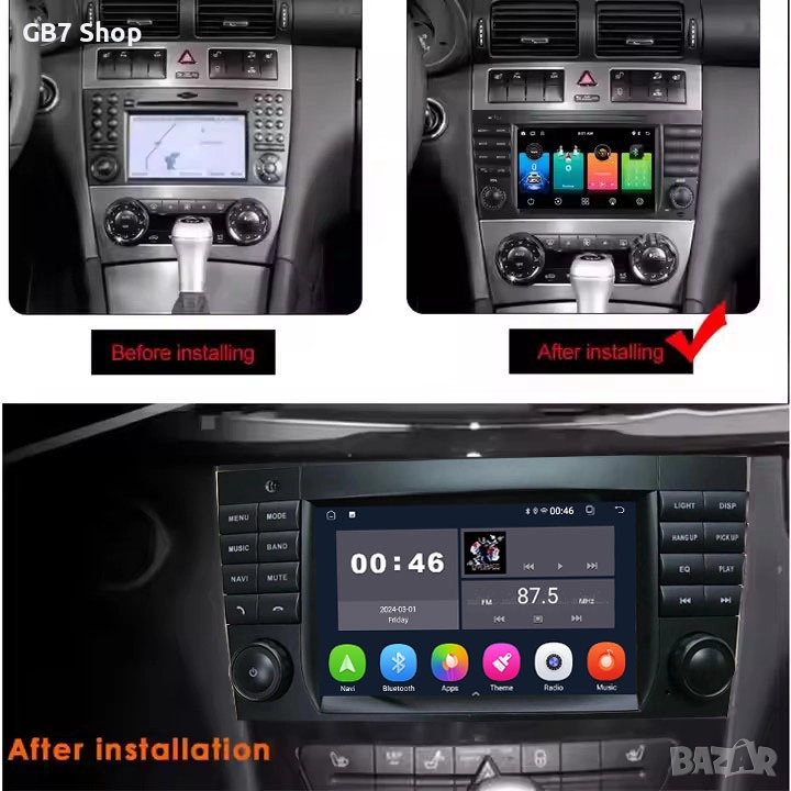 Мултимедия за Мерцедес C-Class W203 2Din 7-инчa *Android|Carplay | Bluetooth |GPS навигация |