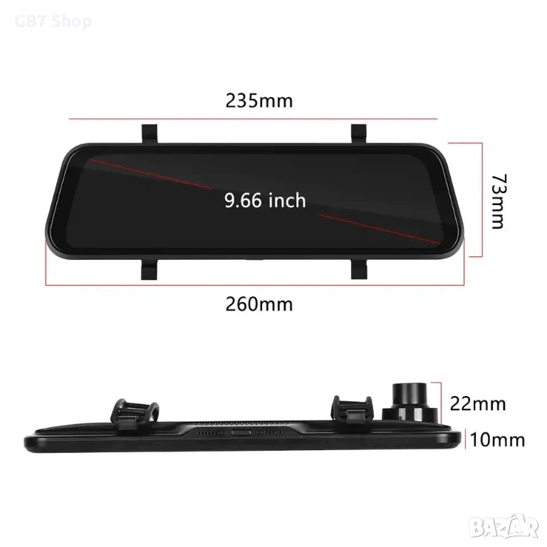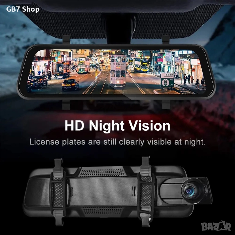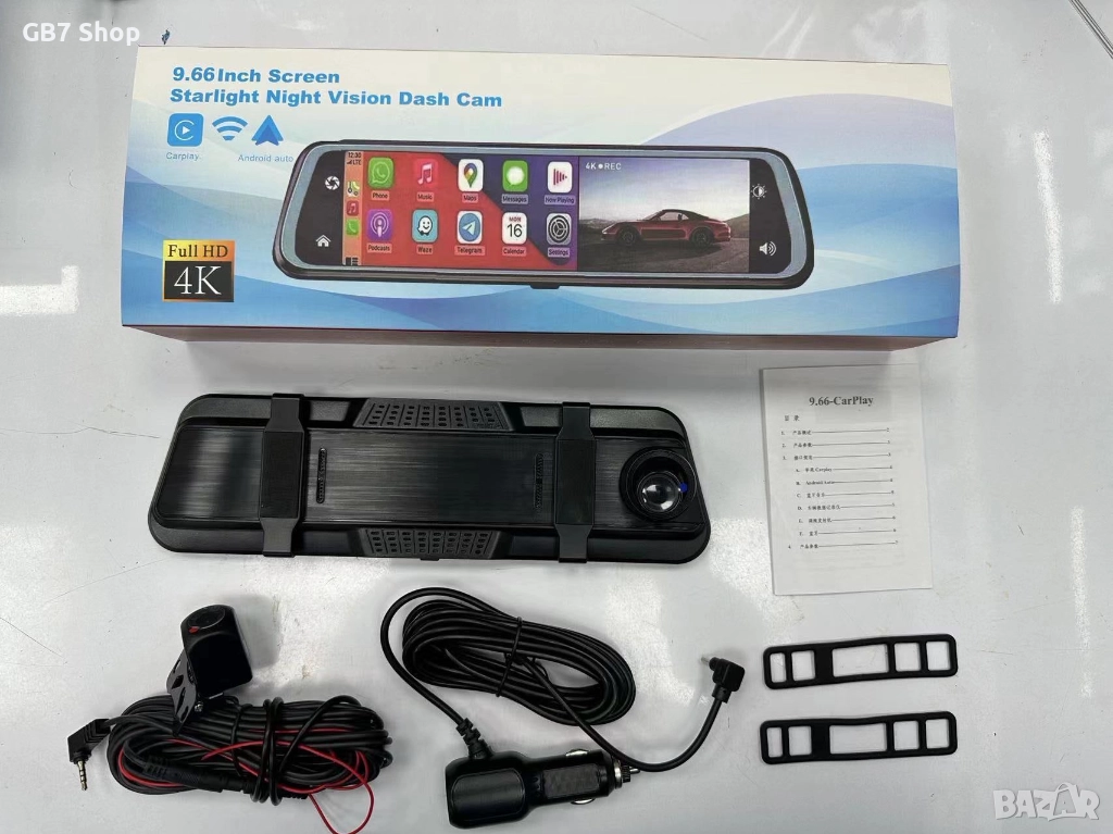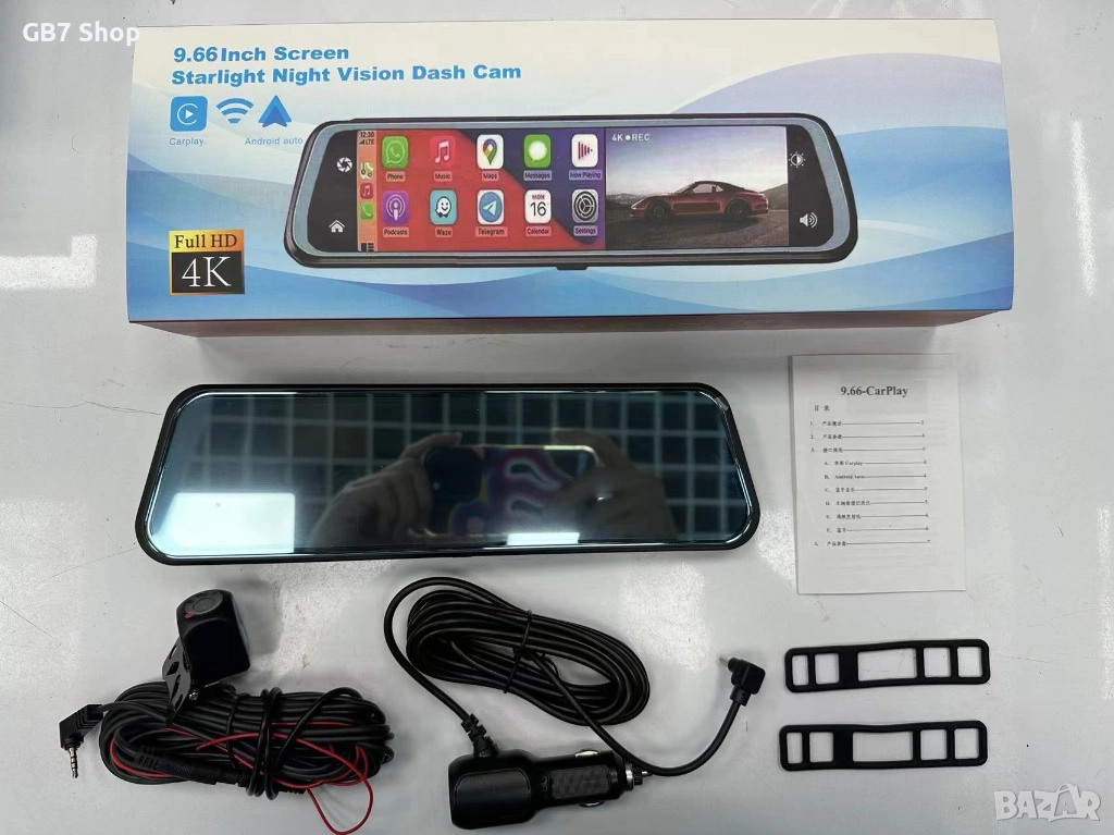 9.66″ Смарт Огледало с 4K Видеорегистратор, Задна Камера 1080p, GPS Навигация, CarPlay/Android