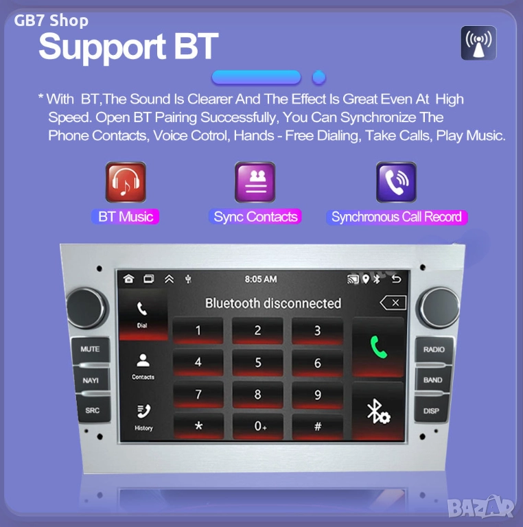 Мултимедия за Opel 2Din 7-инчa *Android|Carplay | Bluetooth |GPS навигация | Bluetooth | MP5 плейър
