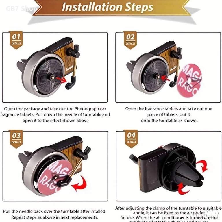 📌 Aроматизатор за автомобил с дизайн на класически грамофон – стилна и функционална декорация за твоя автомобил, която съчетава уникален външен вид с дълготрайно и приятно ухание. Лесно се поставя на въздуховода, за да разпространява равномерно аромата в целия салон.