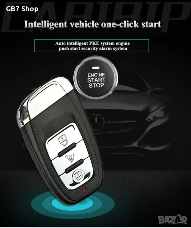 Универсална Автомобилна Смарт Алармена Старт-Стоп Система С Безключов Достъп с Едно Докосване, Дист