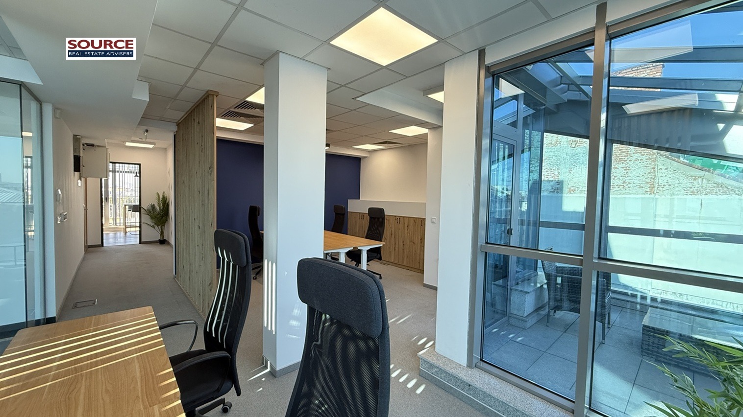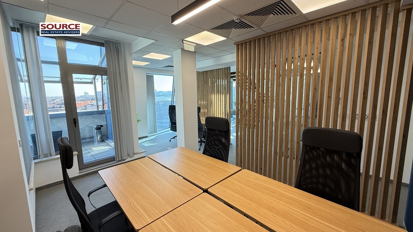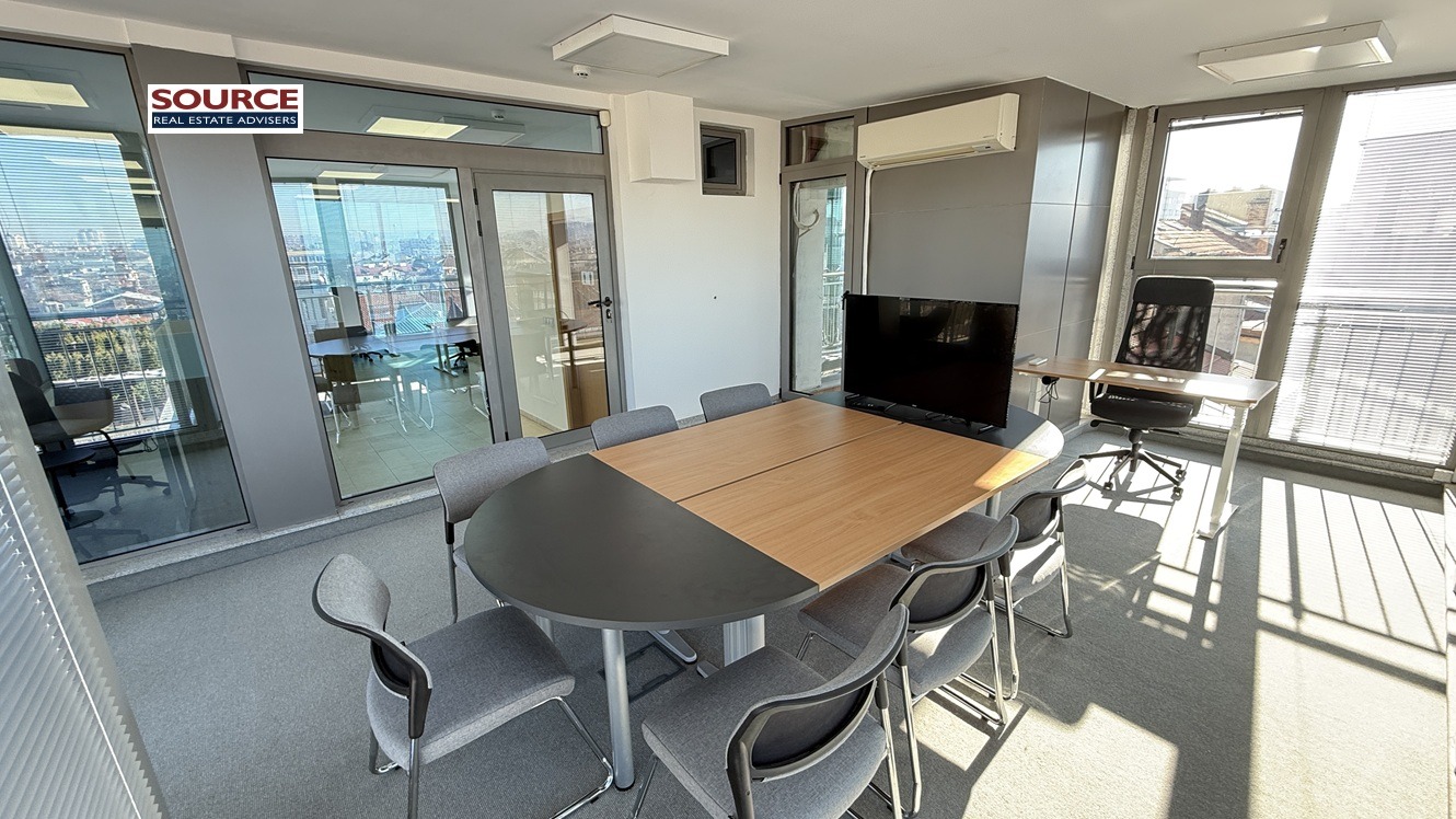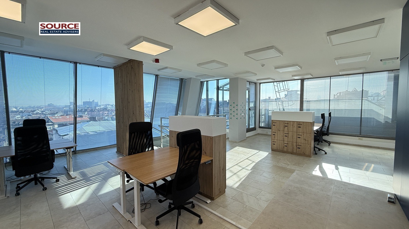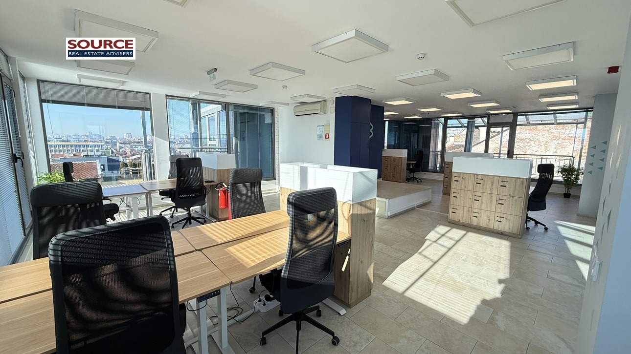 4. Офис обзавеждане: Офисът се отдава обзаведен с обзавеждането на снимките. Може да се наеме и необзаведен.