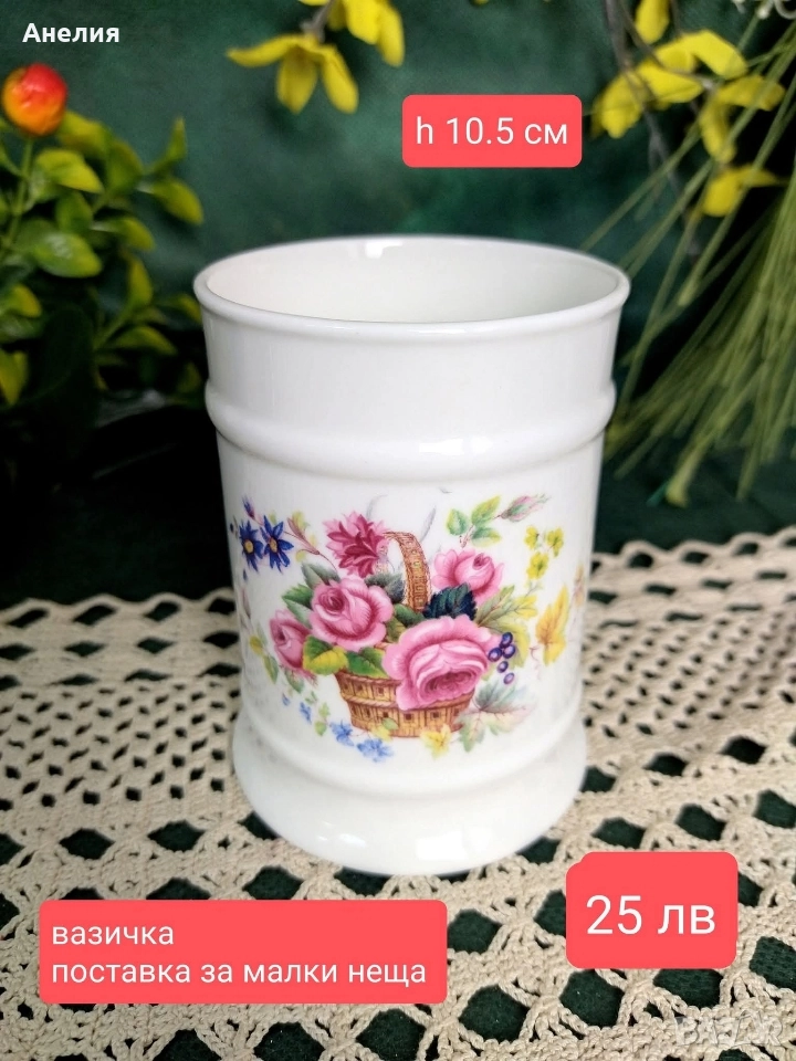 Ваза 10.5 см или съд за поставяне на бъркалки или други неща. Цена 25 лв/12.78€