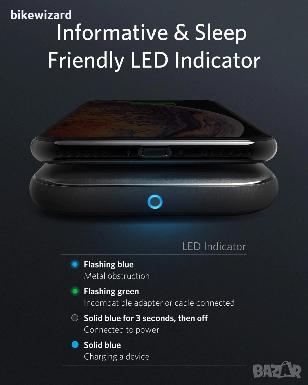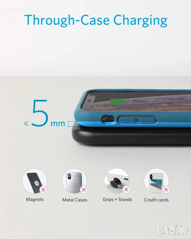 Безжично зарядно устройство Anker, PowerWave Base Pad 10w max НОВО