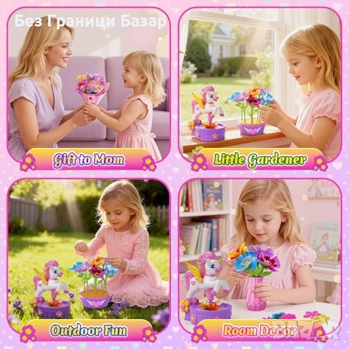 Нов Арт комплект еднорог с цветя и ваза креативна игра за деца играчка