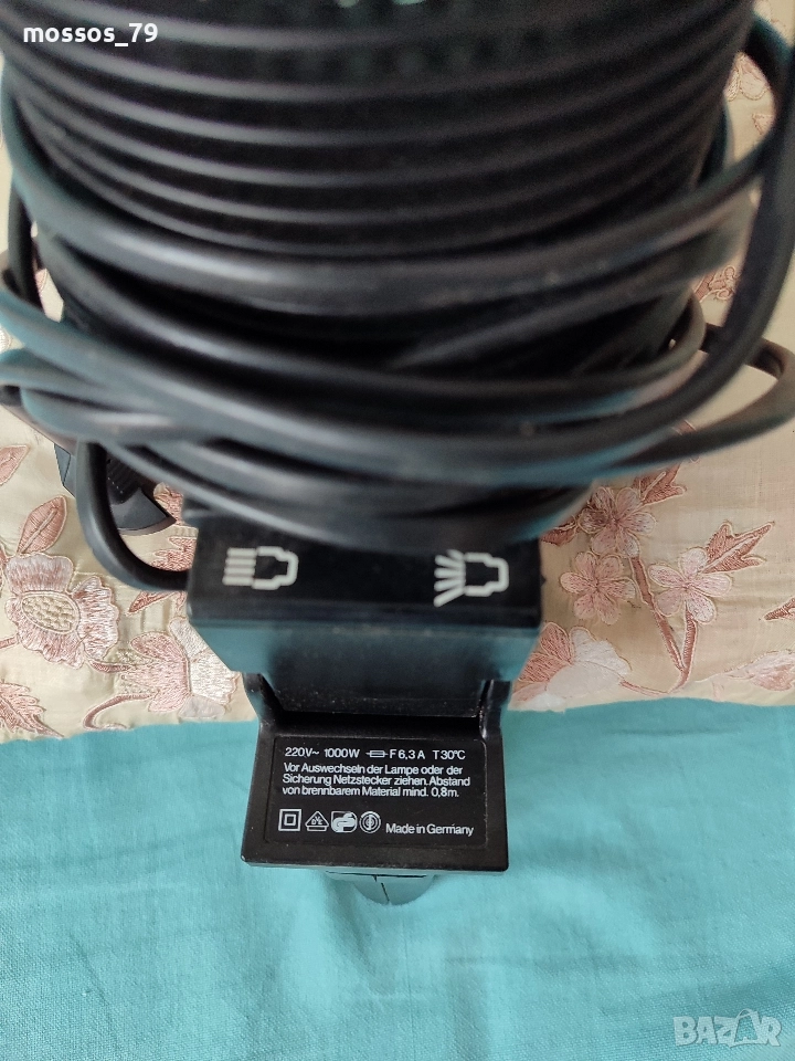 Немски прожектор с мощност 1000W с вграден вентилатор за постоянен режим на работа. Кабел около 5 метра.