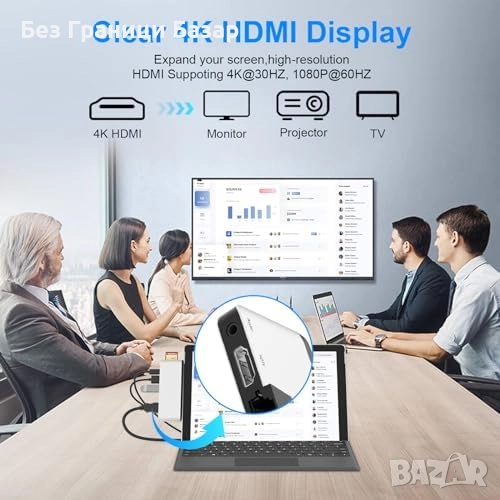Поддържа 4K HDMI и Thunderbolt 4 (8K видео, 40Gbps трансфер, 100W PD)