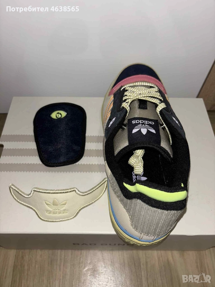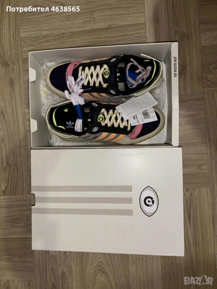 Нови маратанки Bad Bunny × adidas Forum Low Powerphase. С кутия, торбичка и два вида допълнителни връзки. Сваляща се задна емблема на Адидас и над езика. Номер 42 и 2/3. Цена 230лв.