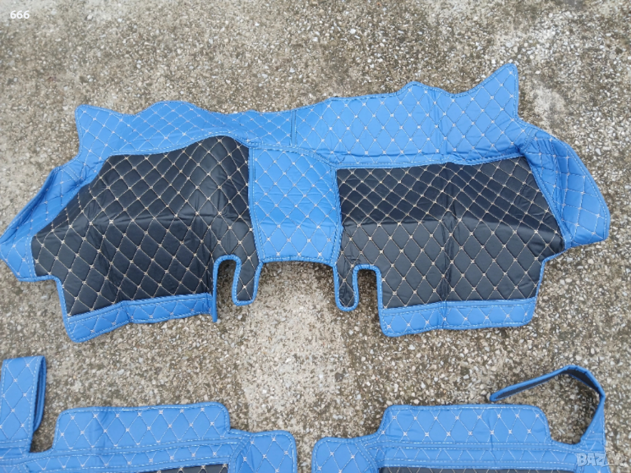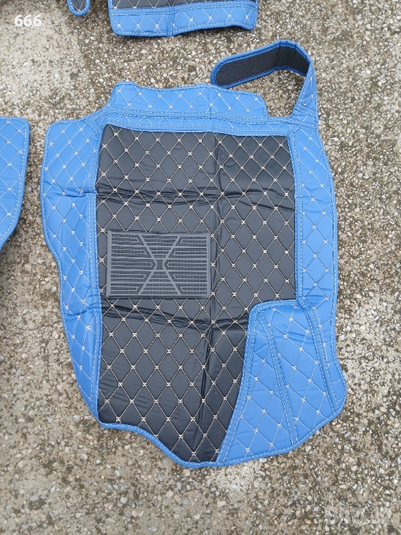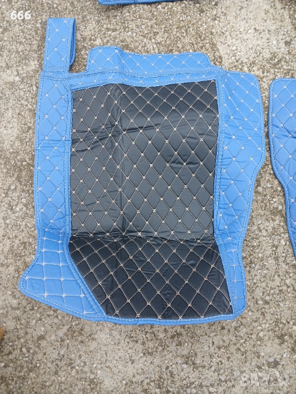 Комплектът е от сини и черни автомобилни стелки с диамантен дизайн.