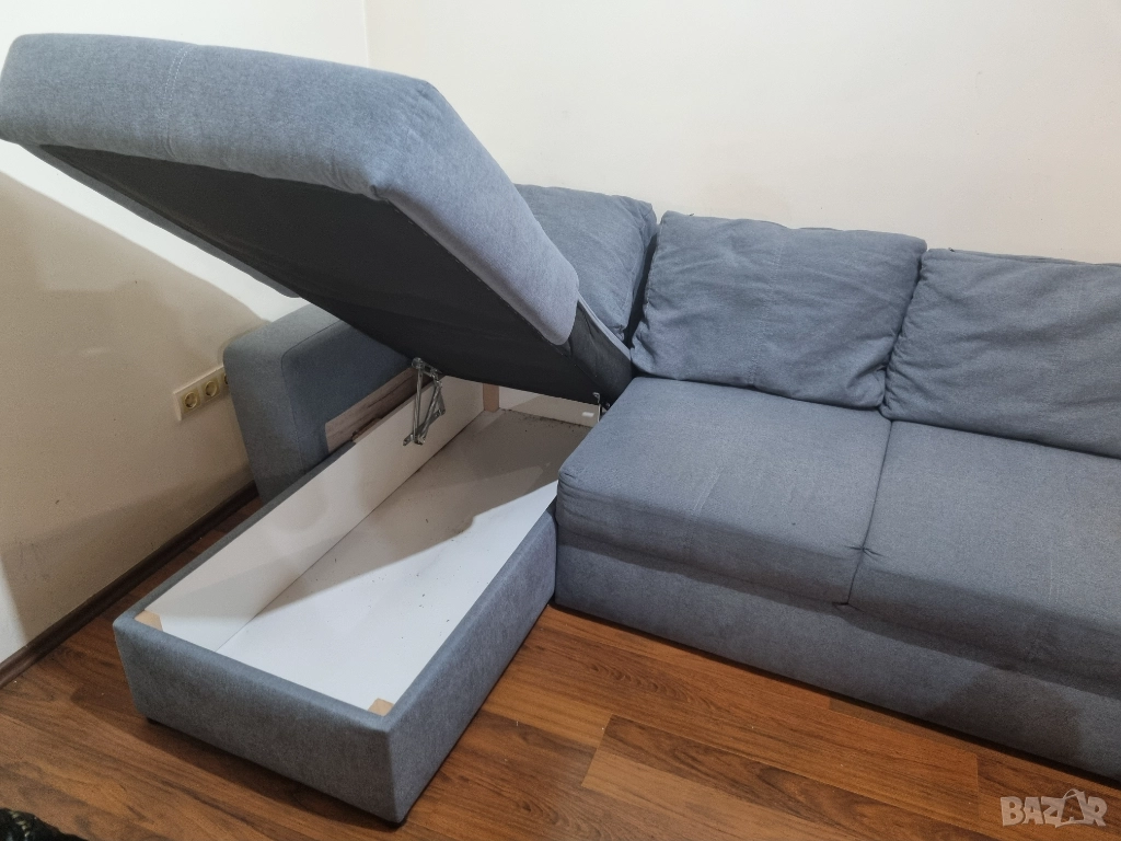 Триместен диван с лежанка и ракла (повдигащ механизъм) и функция сън → Обява 52743355