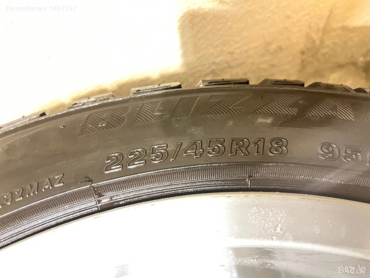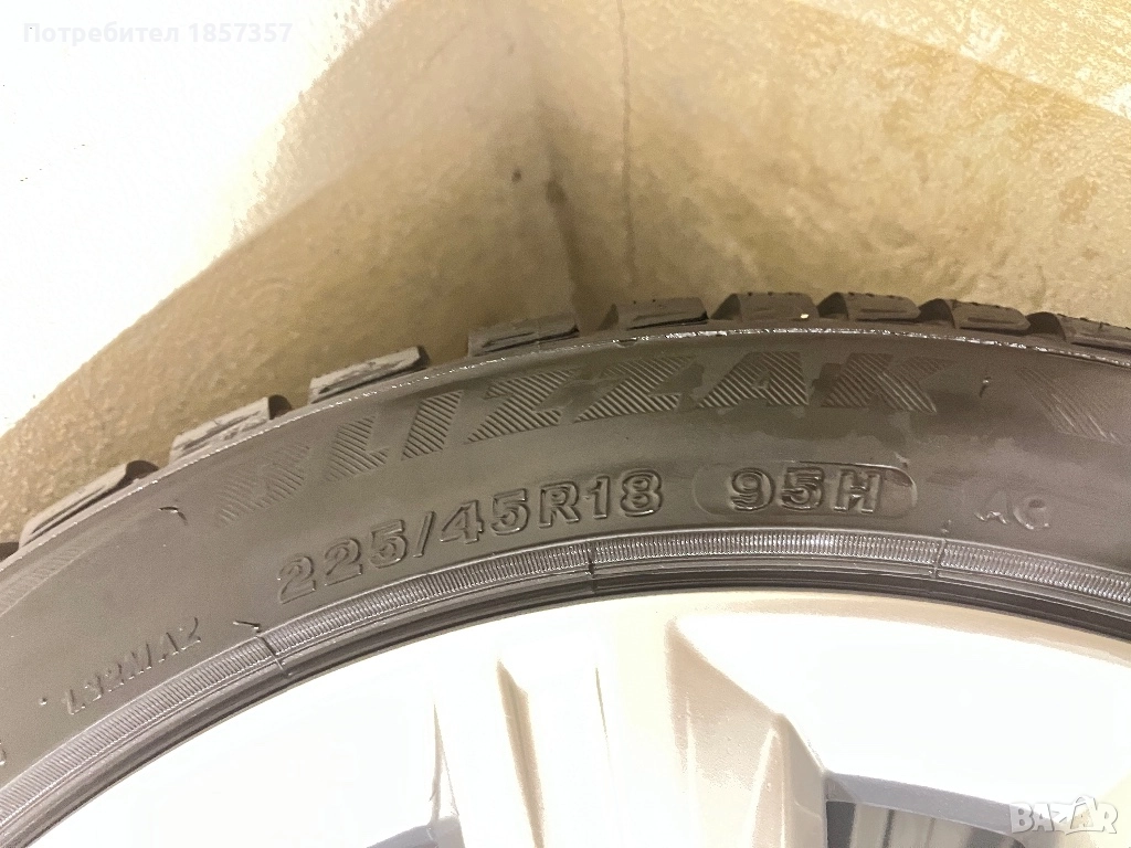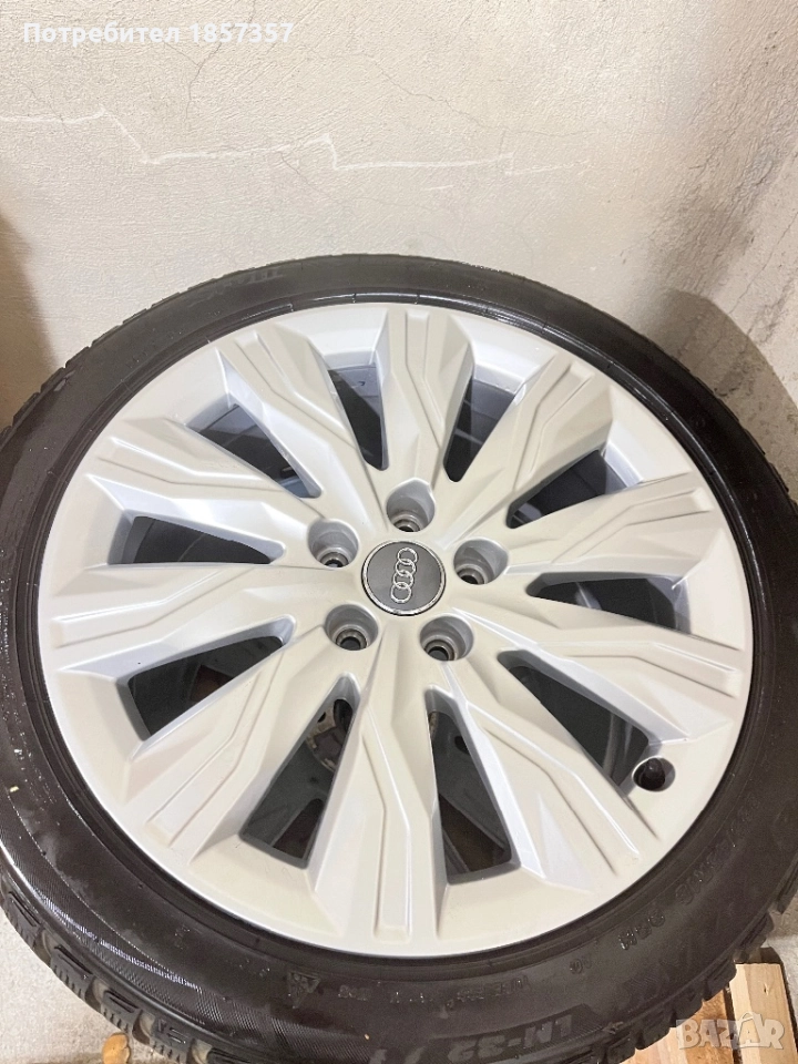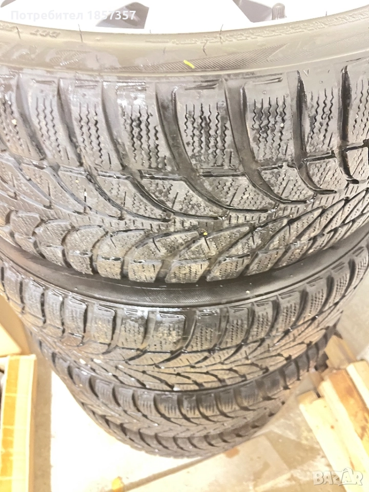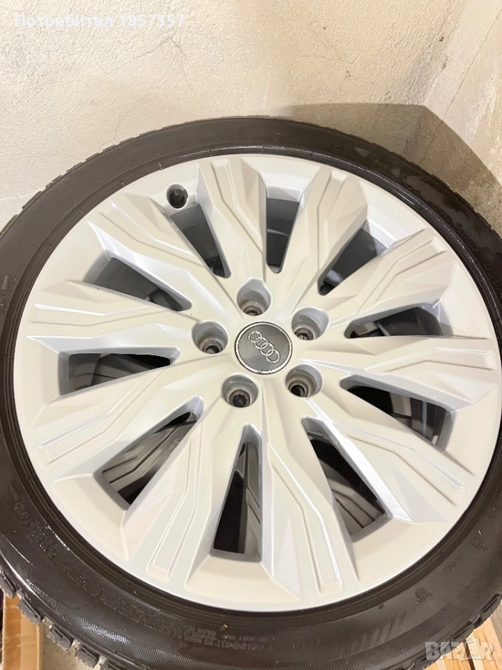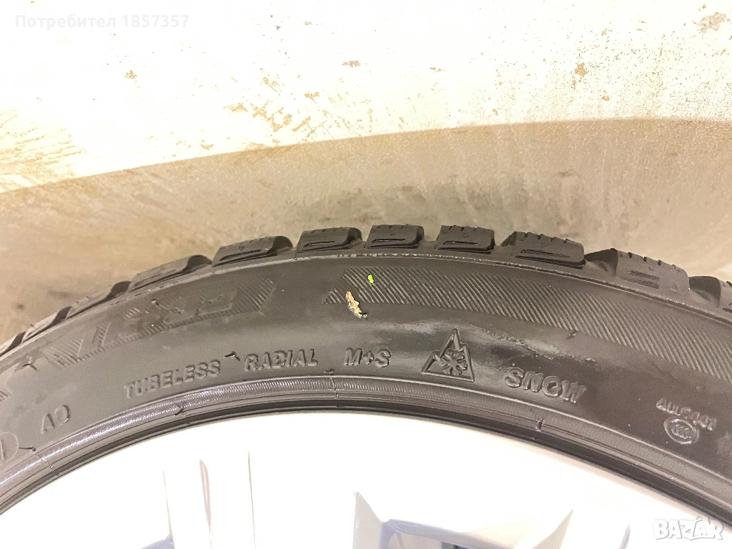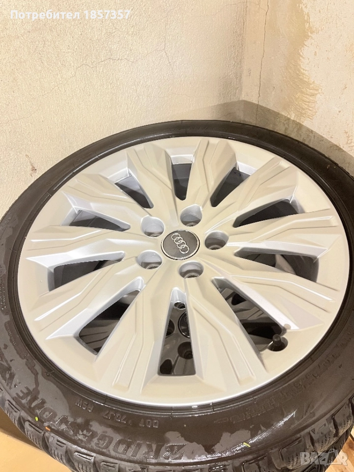Оригинален хомологиран за Ауди (А0) зимен комплет джанти и гуми. Гумите са с Дот 17, но са с дълбок имсвеж грайфер. Audi A4 S4 B9 8W Gravis Winterräder 18 Zoll Felgen 8W0071498. Едната гума има леко балонче (оградено на снимката) , което съм се постарал да се вижда максимално добре. Карани са последно преди два сезона. Тихи и балансирани, без забележки към комфорта гуми, но се оказа, че “летния” ми комплект е бил всесезонен и тези останаха да седят.