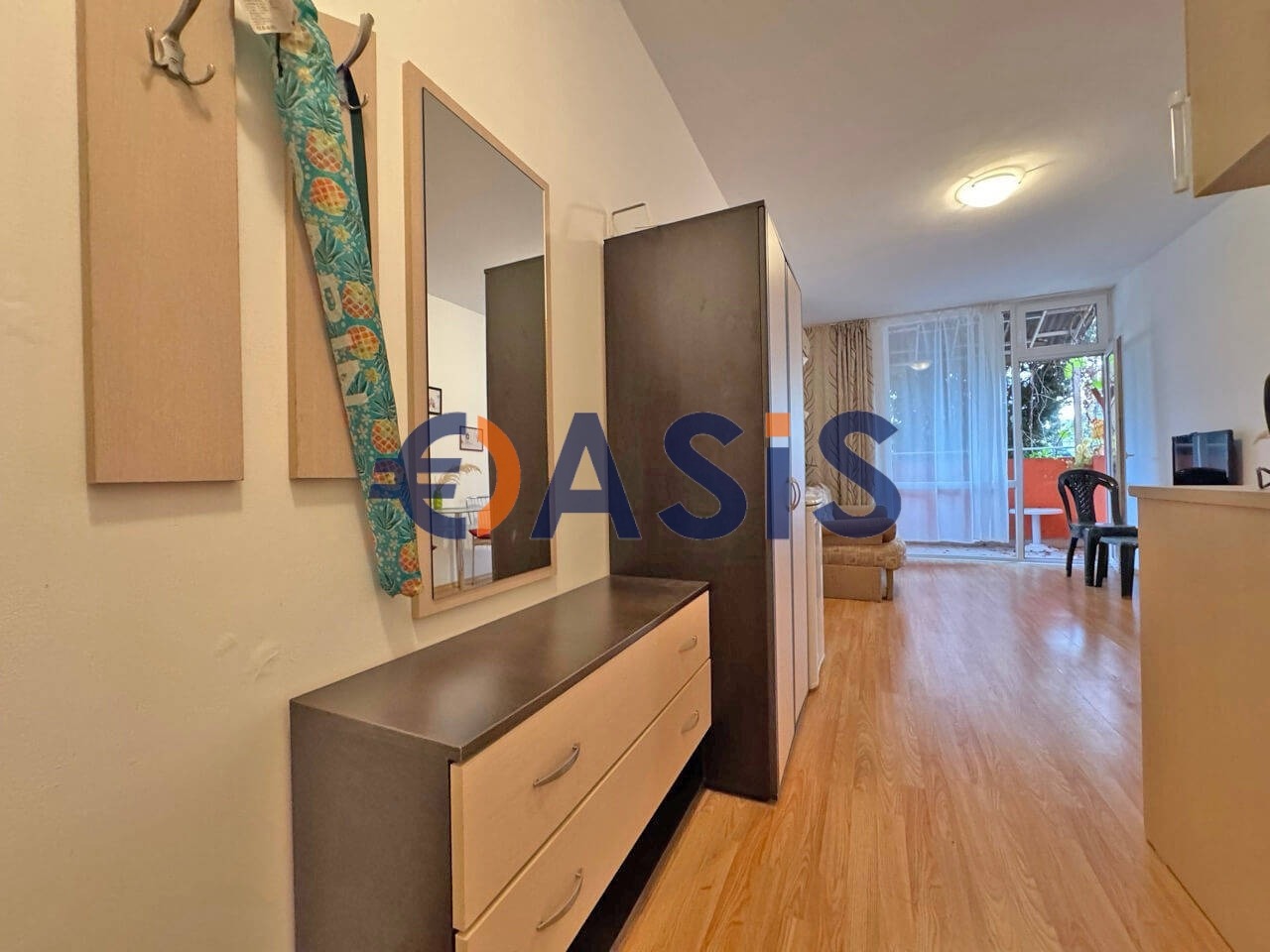 Този комплекс разполага с басейн и оградена, охраняема зона с видеонаблюдение. Намира се в тих район, но същевременно близо до центъра на Слънчев бряг. Най-добрият, най-чист и широк пясъчен плаж на курорта е само на 800 метра. В близост има магазини, летни нощни заведения, ресторанти, кафенета и барове. Апартаментът е подходящ както за лятно, така и за целогодишно ползване. Продава се напълно обзаведен, включително уреди и пералня. Комплексът е удобно разположен близо до плажа Какао, което го прави идеален за отдаване под наем. Мрежа от плажни нощни заведения и дискотеки на красивото крайбрежие са на пешеходно разстояние.