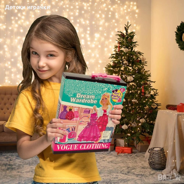 Комплектът включва още две рокли, пет чанти, четири чифта обувки, три закачалки и кутия за малки предмети. Играта с този гардероб ще научи детето ви как да поддържа пространството си подредено и организирано.