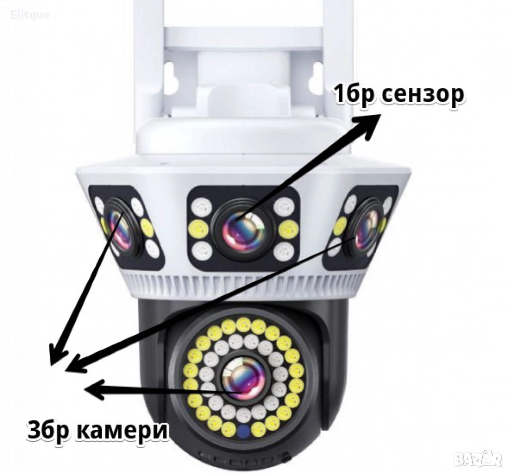 Обективи: 3 обектива за широко панорамно покритие и множество ъгли на наблюдение;