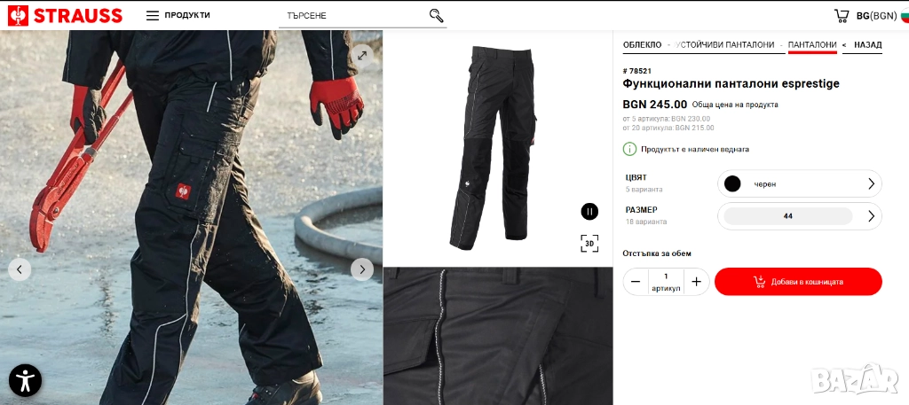 Работни панталони : Материалът е използван, наред с други неща, в серията работни панталони es prestige , където осигурява издръжливост и защитни функции, сравними с тези на мотоциклетното облекло.