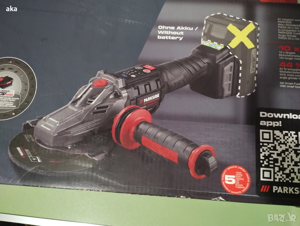 ъглошлайф PARKSIDE PWSA 20-Li D4: 10 х по-дълъг експлоатационен живот на двигателя 44% по-компактна глава на ъглошлайфа Със смарт функции