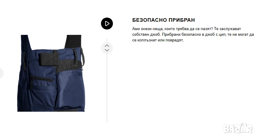 Вътрешен джоб за гащеризон с предпазен джоб.