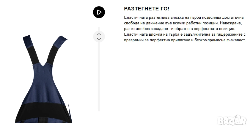 Свобода на движение: Панталонът е с удобна система за колан Flexbelt отстрани, която е еластична и допринася за приятно носене. Заедно с еластичните тиранти, това осигурява оптимално прилягане и свобода на движение по време на различни дейности като навеждане, коленичене и разтягане.