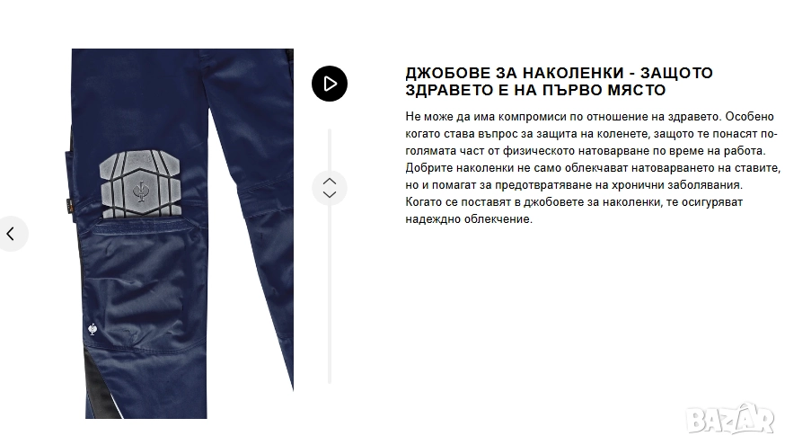 Engelbert Strauss esmotion са популярни работни панталони, известни със спортния си вид, здравина и практични детайли като джобове за наколенки и ластик на талията.