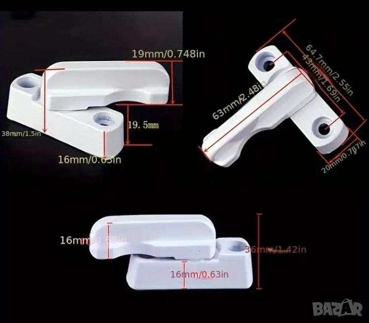 Два/2/ броя райбери за Дограма. Посочената цена е за к-т от Два/2/броя с включени винтове за монтаж и аксесоари за декорация! Бял цвят, материал пластмаса и метал. Повече информация вижте снимките! Разгледайте и другите ми обяви за парфюми техника и Ала-бала 🙂