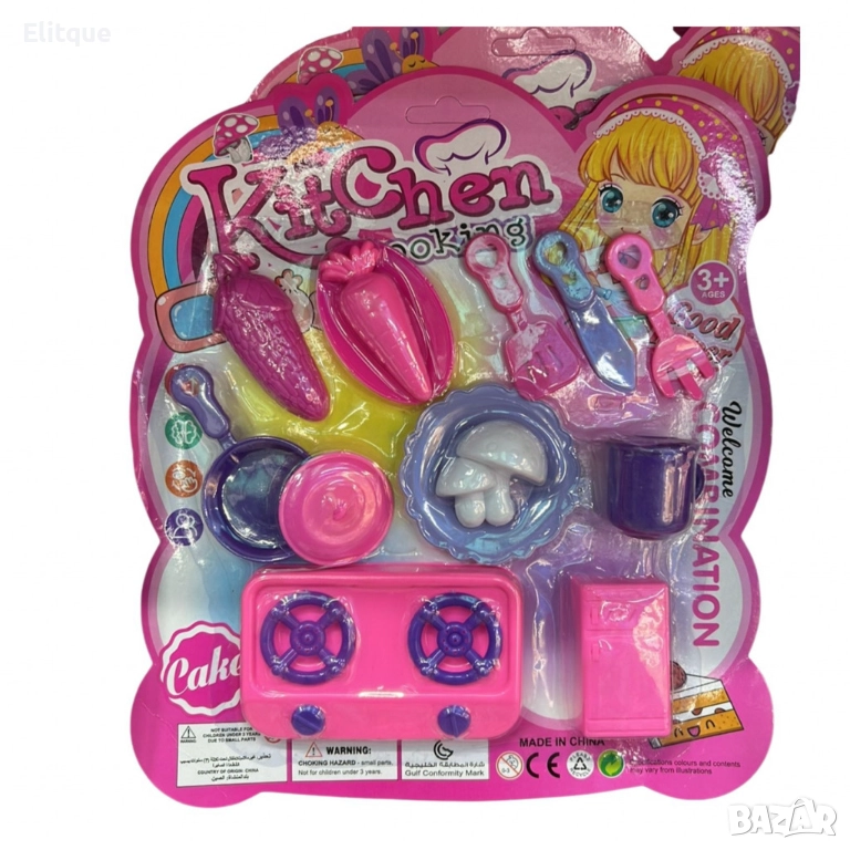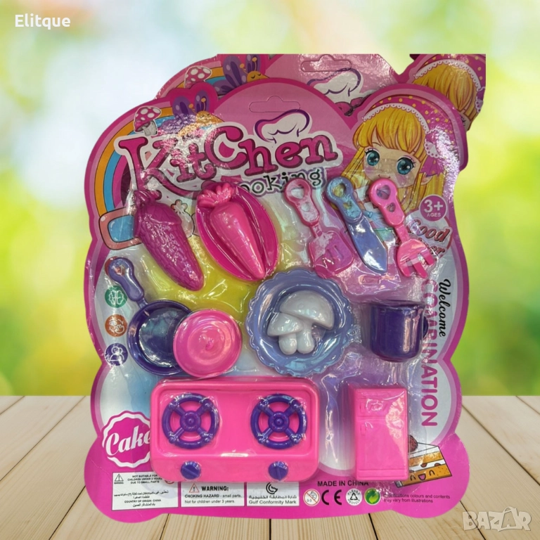 Детски кухненски аксесоари (3+ години) - Комплектът включва котлонче, хладилник, тиганче, прибори, морковче и гъбки, които ще развлекат и обучат малките готвачи. Всички части са безопасни и създадени от нетоксични материали, подходящи за деца над 3 години. Играчките са с ярки цветове и детайлно изработени, осигурявайки забавление и развитие на въображението и координацията на децата. Този комплект е отличен начин да се стимулират социалните умения и ролева игра.