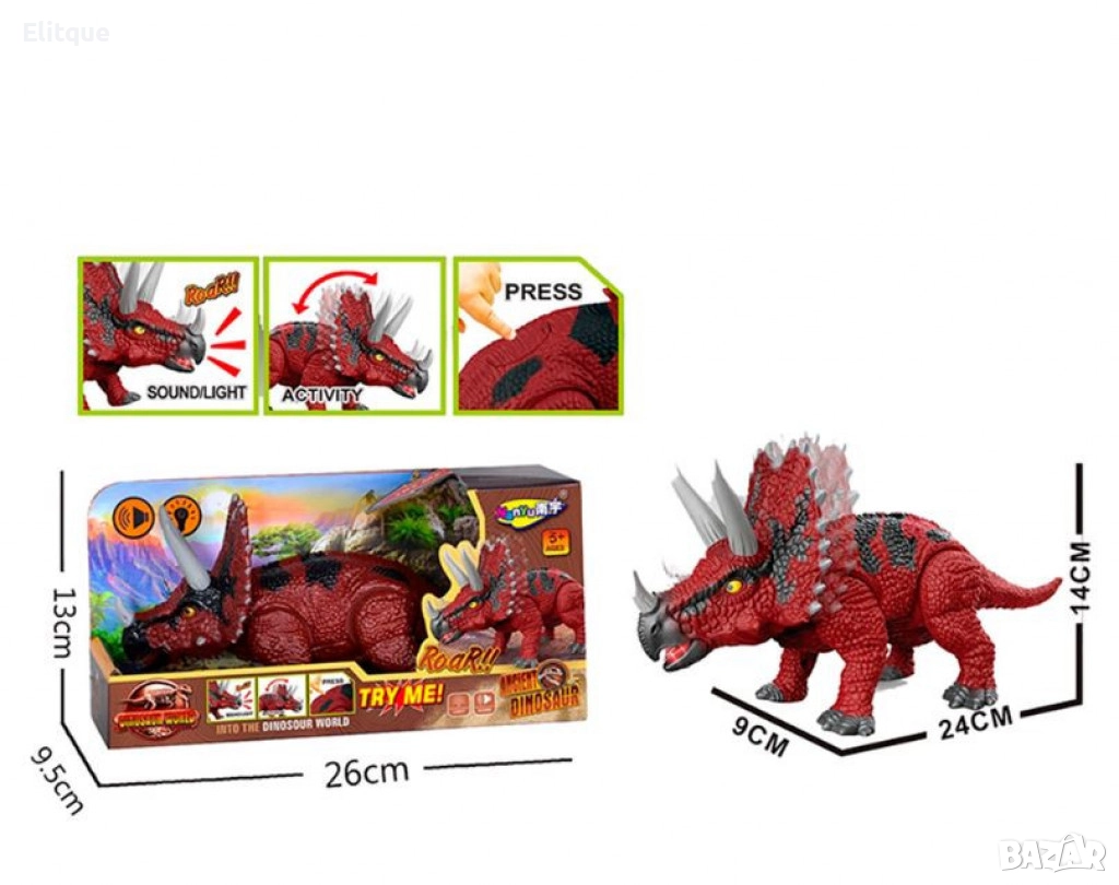 Динозавър с движещи се крайници, звук и светлина
